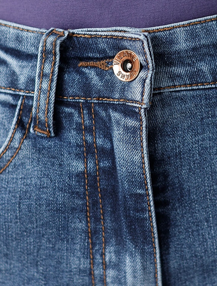 Широкие джинсы с декоративной стиркой из эластичного плотного денима