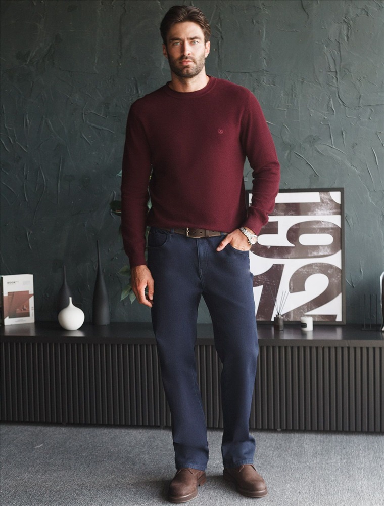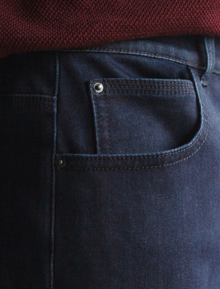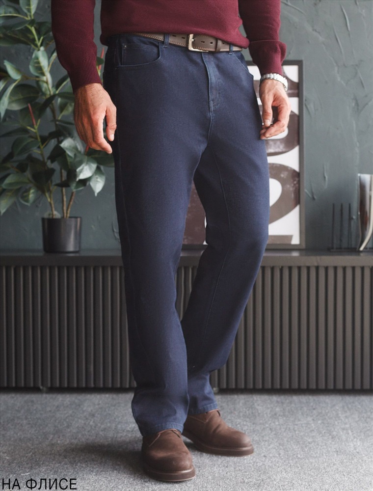 Теплые джинсы темно-синего цвета прямого кроя созданы для мужчин, ценящих комфорт и стиль даже в холодную осень или зиму. Повседневные джинсы выполнены из эластичного денима, легко тянутся и не сковывают движений, обеспечивая правильный баланс между свободой и удобной посадкой стандартного фасона. Внутри мягкий флис дарит приятные ощущения, надежно согревают в холодную погоду и делают каждую прогулку максимально комфортной. Свободный классический крой подходит на разные типы фигур, в том числе и большие размеры. Правильная посадка гарантирует удобство и комфортные ощущения при носке. Джинсы дополнены пятью карманами и брендированным патчем на поясе. Джинсы удобные на все случаи жизни: они сохраняют форму, не деформируются при носке и обеспечивают оптимальную теплоизоляцию. Утепленный материал создает дополнительный уровень защиты от холода, что делает изделие надежным выбором на зиму и осень. Комфортные брюки отлично сочетаются с разными образами благодаря универсальному дизайну. Они подходят тем, кто ценит практичность и стиль без компромиссов по качеству.