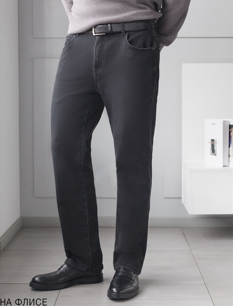 Теплые джинсы черного цвета прямого кроя созданы для мужчин, ценящих комфорт и стиль даже в холодную осень или зиму. Повседневные джинсы выполнены из эластичного денима, легко тянутся и не сковывают движений, обеспечивая правильный баланс между свободой и удобной посадкой стандартного фасона. Внутри мягкий флис дарит приятные ощущения, надежно согревают в холодную погоду и делают каждую прогулку максимально комфортной. Свободный классический крой подходит на разные типы фигур, в том числе и большие размеры. Правильная посадка гарантирует удобство и комфортные ощущения при носке. Джинсы дополнены пятью карманами и брендированным патчем на поясе. Джинсы удобные на все случаи жизни: они сохраняют форму, не деформируются при носке и обеспечивают оптимальную теплоизоляцию. Утепленный материал создает дополнительный уровень защиты от холода, что делает изделие надежным выбором на зиму и осень. Комфортные брюки отлично сочетаются с разными образами благодаря универсальному дизайну. Они подходят тем, кто ценит практичность и стиль без компромиссов по качеству.