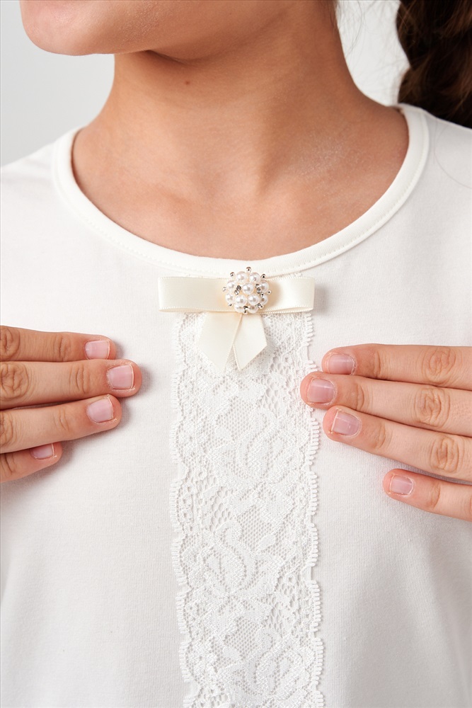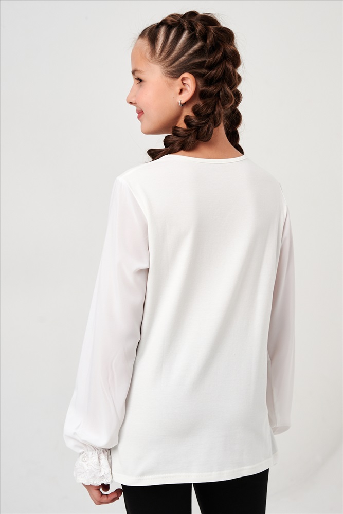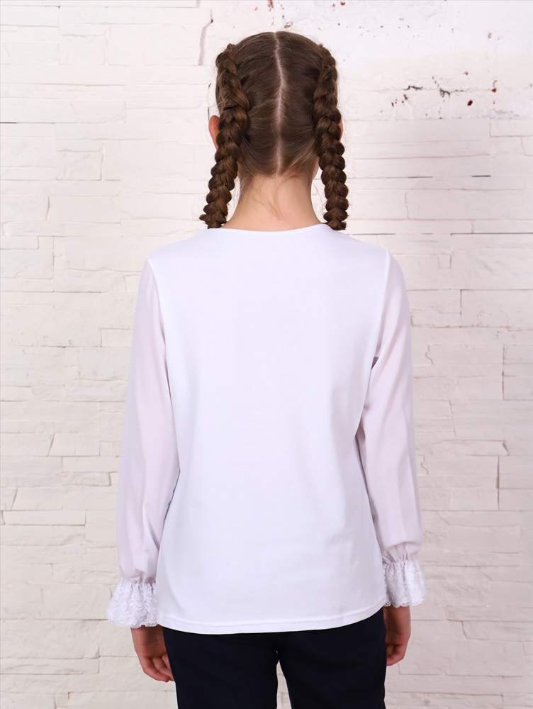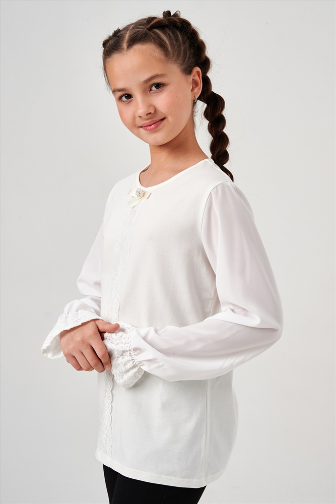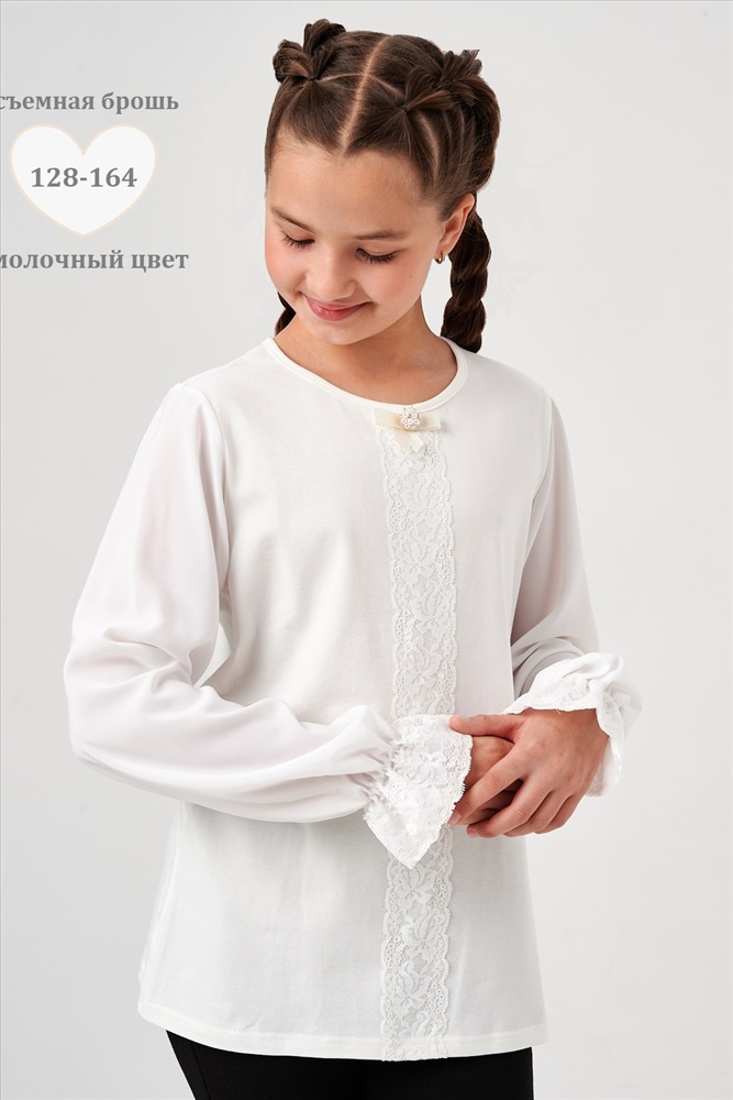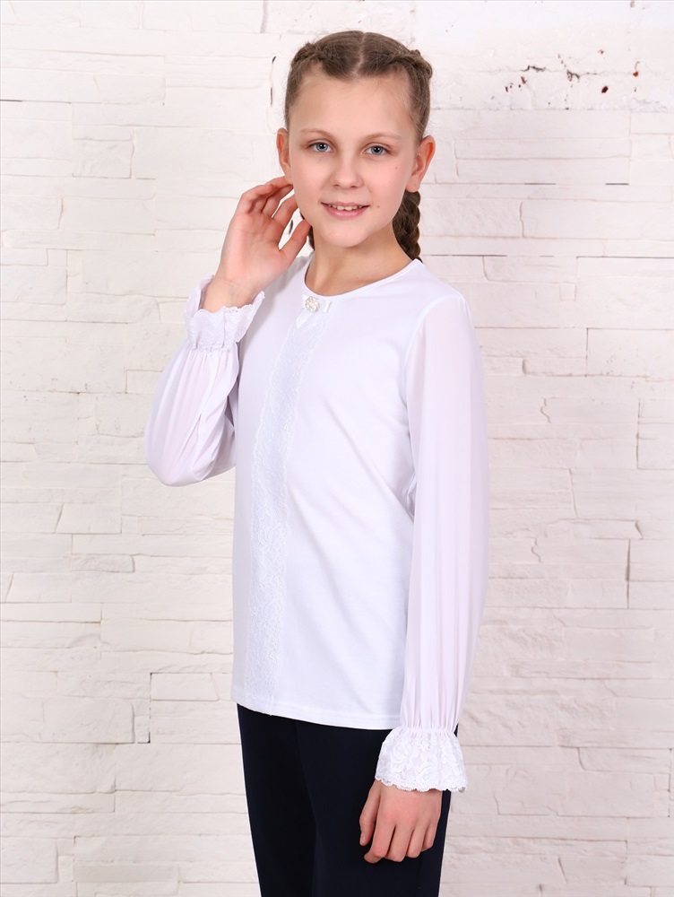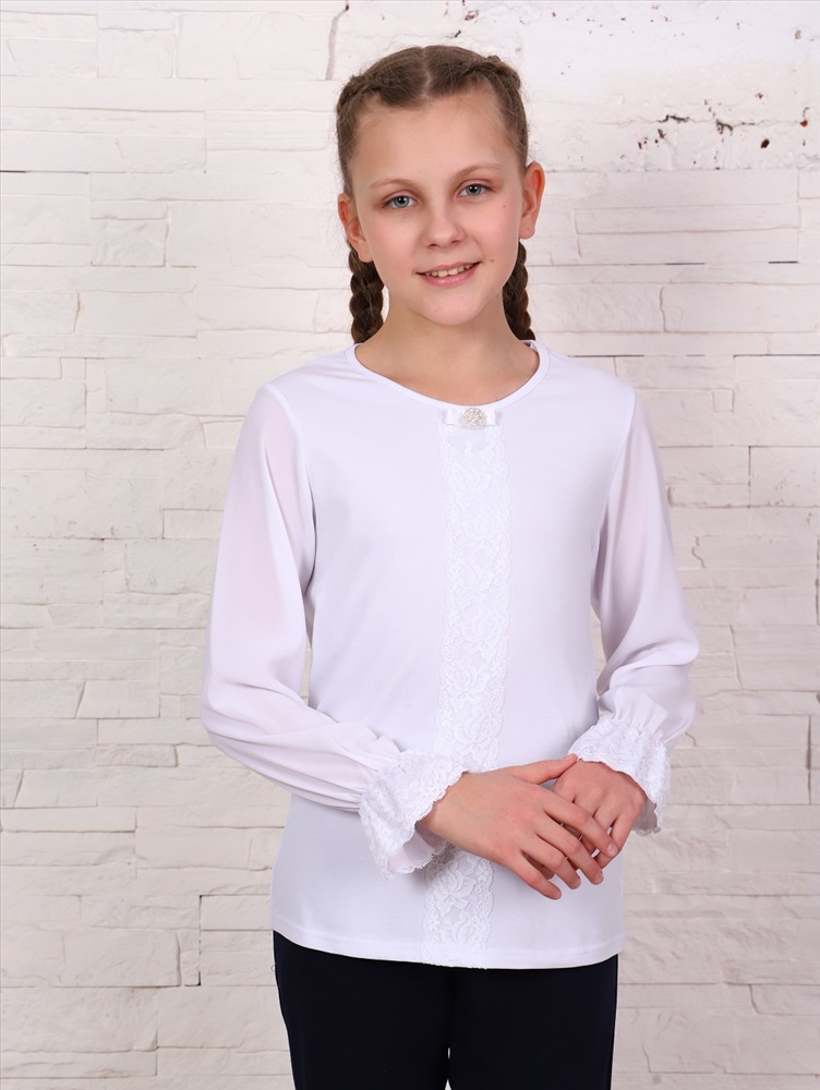Состав: 92% хлопок, 8% лайкра Модель: Джулия блузка детский дл.рукав Тип товара: блузка Материал: кулирка с лайкрой | кулирка с лайкрой Бренд: Мурлыка Длина: средняя длина Карман: без карманов Отделка: с воланами Рисунок: однотонные Рукав: длинный рукав Сезонность: лето | осень | весна | зима Силуэт: прямой Скидка: любая Стиль: для школы | молодежный Воротник: без воротника Застежка: без застежки Блузка для девочек младшего и старшего школьного возраста, из трикотажного полотна кулирка с лайкрой и шифона. Блузка прилегающего силуэта, с втачным рукавом. Перед и спинка выполнены из трикотажного полотна, рукава из шифона. По центру переда от горловины до низа настрочено кружево. Рукава снизу присборены на резинку. По низу рукавов насточено кружево. Горловина окантована. По центру горловины спереди прикреплен декоративный элемент. Низ изделия подогнут. Таблица размеров и веса