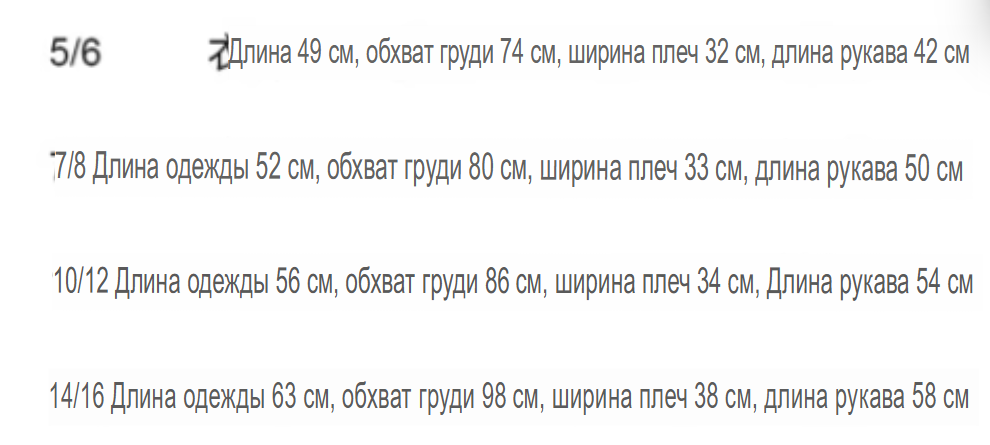 Размер: 5/6 - 116, 7/8 - 128, 10/12 - 150, 14/16 - 160