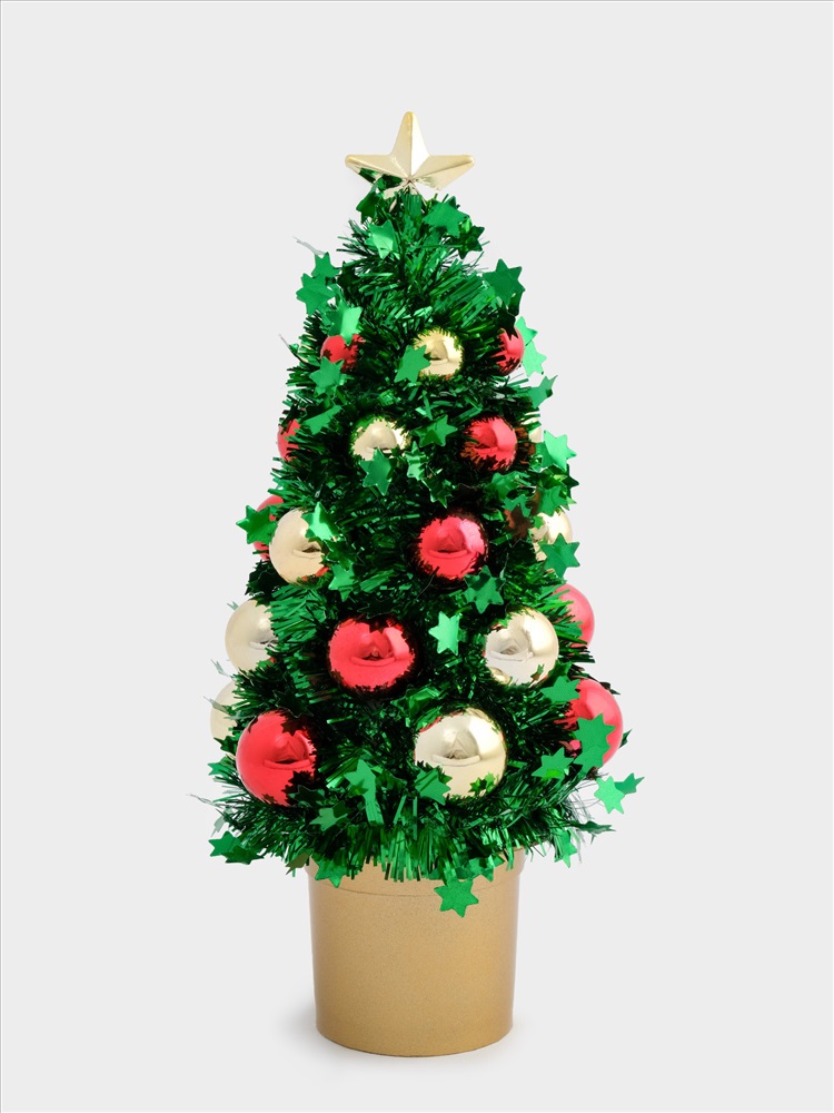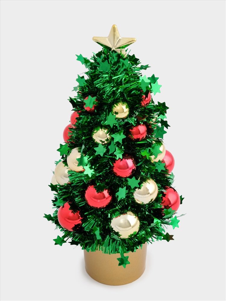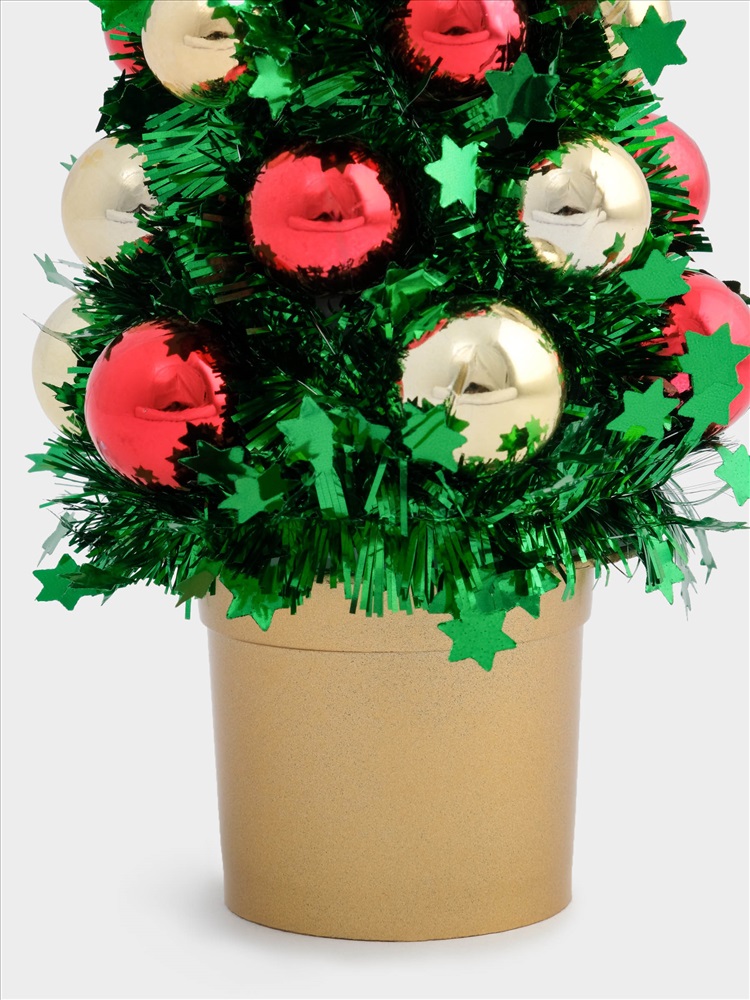Ель искусственная, 21 см, с шарами, в горшке, мишура/пластик, зеленая, New year