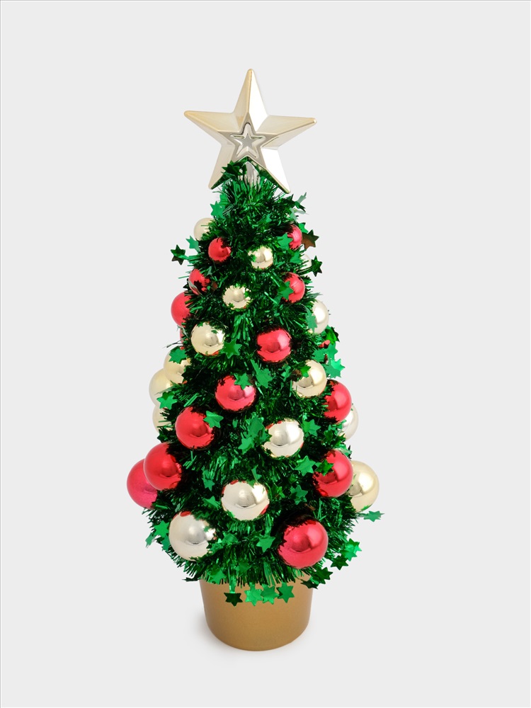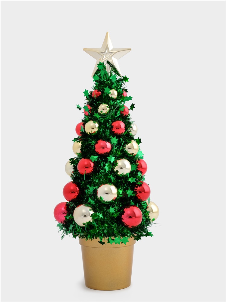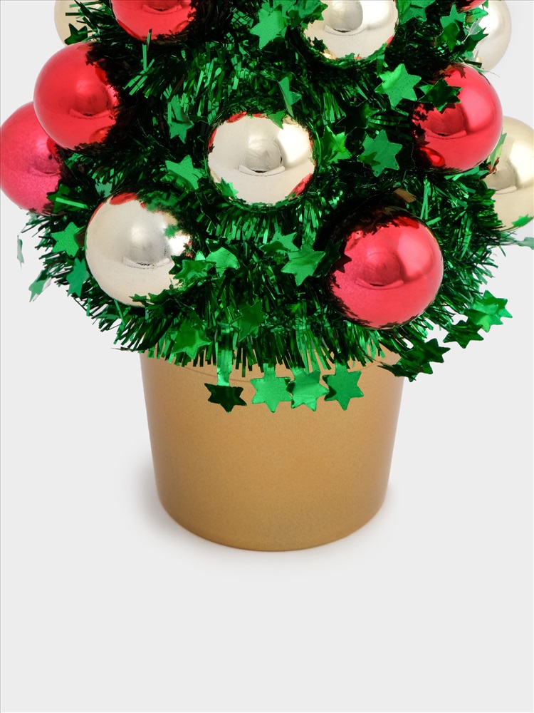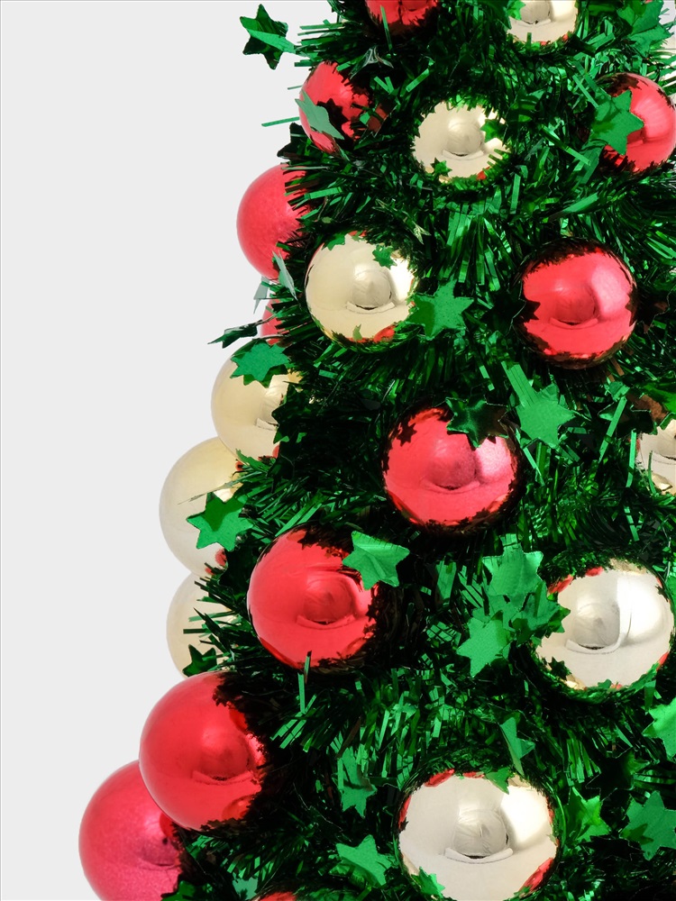 Ель искусственная, 30 см, с шарами, в горшке, мишура/пластик, зеленая, New year