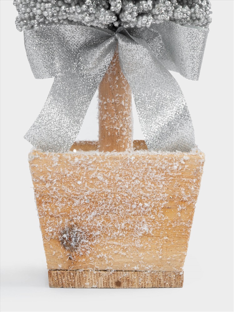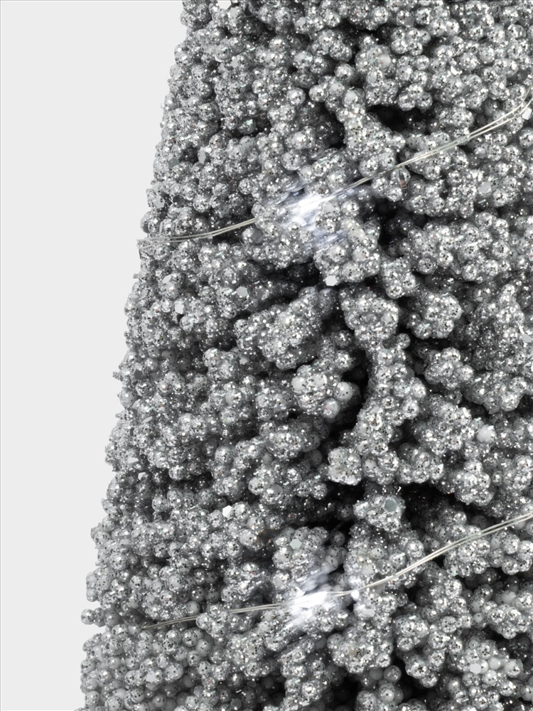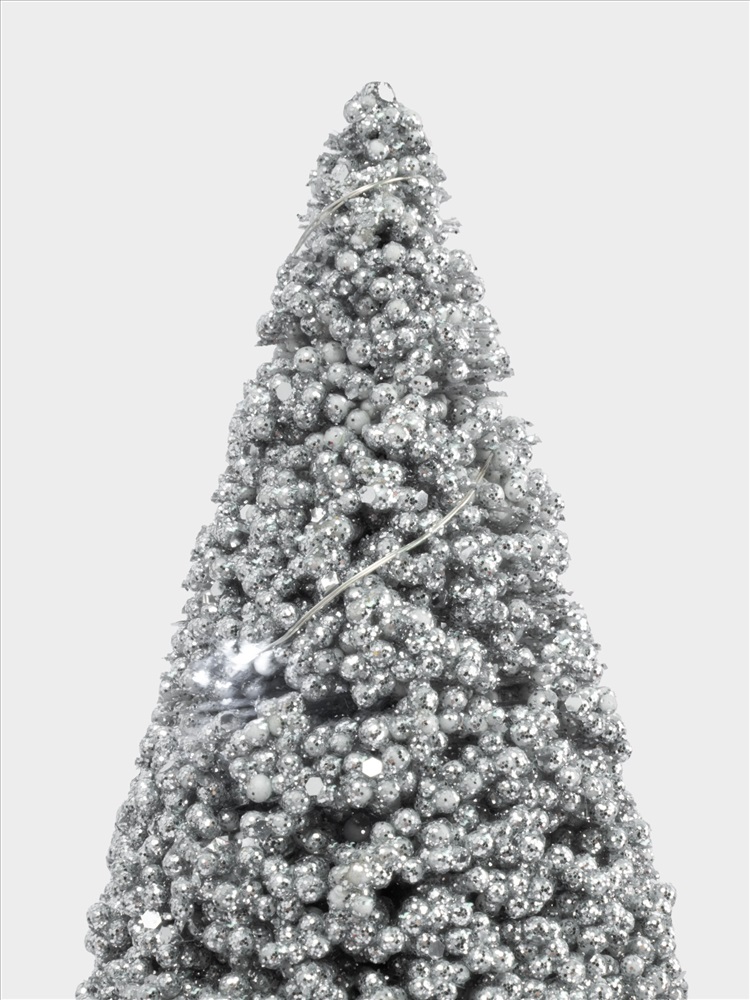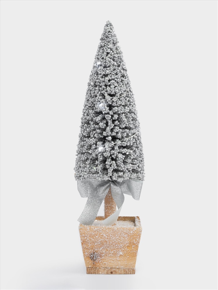 Ель искусственная, 42 см, с подсветкой, в горшке, пластик/дерево, серебристая, Interior silver