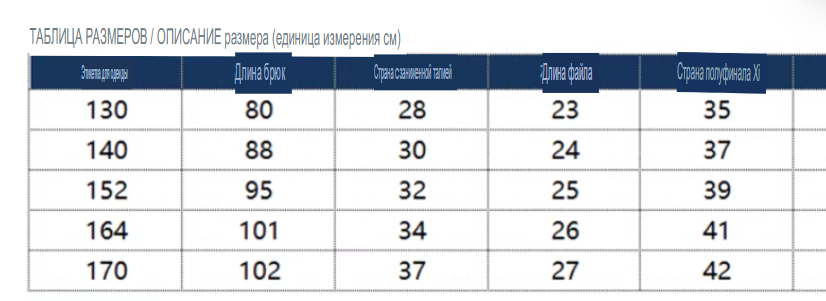 Размер: 130, 140, 152, 164, 170