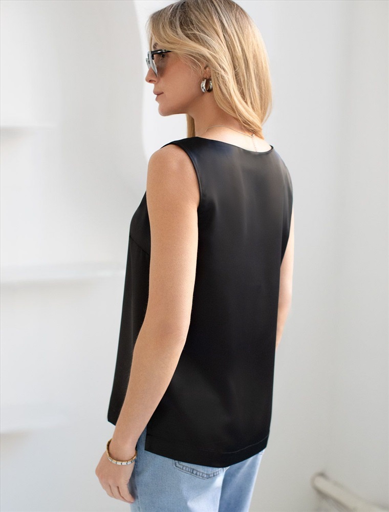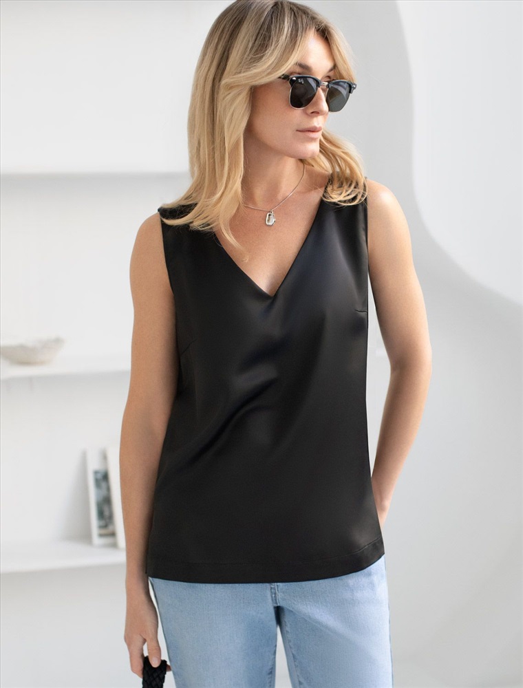 Плотность: 190 Г/м2 Изящный нарядный топ черного цвета с V вырезом выполнен из нежного премиального сатина с небольшим добавлением эластана. Свободный крой обеспечивает комфорт, легкость и свободу движений, подчеркивая изысканность образа и женственность силуэта. Особое внимание привлекает мягкий приглушенный блеск материала, придающий топу дорогое и утонченное звучание. Материал отличается приятной текстурой и долговечностью, что гарантирует долгий срок службы топа. Благодаря струящейся, но плотной ткани, топ мягко ложится по фигуре, придавая легкость и подчеркивая достоинства любого типа фигуры. Приятная на ощупь текстура и хорошая воздухопроницаемость - делает повседневный топ отличным выбором для теплого времени года или для носки в помещении. Топ подойдет как на большие размеры, так и на маленькие — универсальность фасона позволяет чувствовать себя уверенно вне зависимости от комплекции. Декольте оформлено аккуратно, создавая эффектный акцент без излишней открытости. Этот топ идеально подойдет для создания стильного ансамбля на вечерние мероприятия или важные события. Благодаря сочетанию элегантности и практичности, такая стильная блузка без рукавов станет незаменимой частью гардероба для женщин, которые ценят качество и комфорт в одежде. Благородный блеск сатина добавляет нотку роскоши в повседневный гардероб и гармонично сочетается с разными стилями одежды: офисными брюками, джинсами или юбками. V-образный вырез визуально вытягивает шею и создает элегантный акцент в зоне декольте, делая образ более открытым и современным. Комментарии к товару