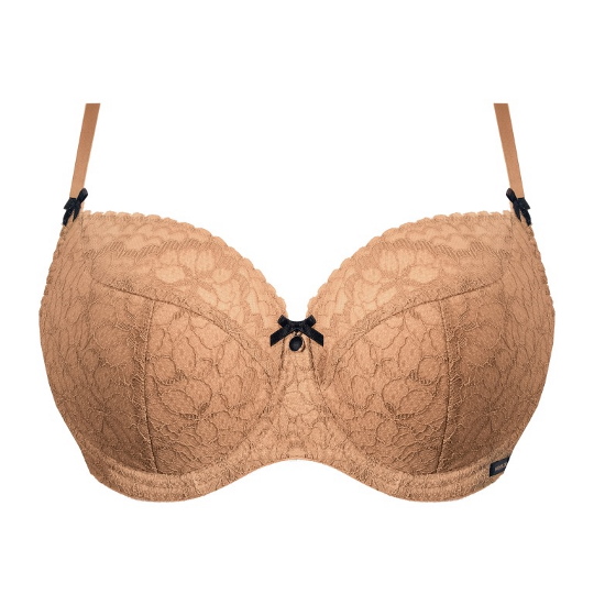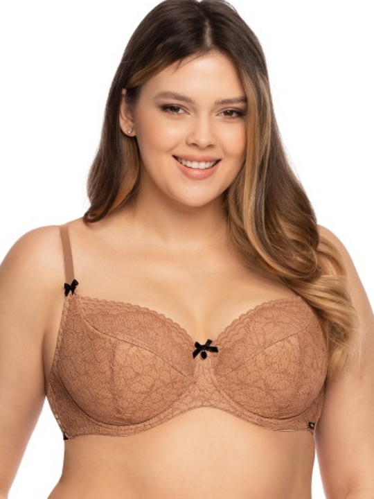 Бюстгальтер из коллекции Elisabeth PU выполнен с дополнительными боковыми поддержками, чашки шитые, на косточках, нижняя часть на тонком поролоне телесного цвета, верхняя из кружева, продублированного сеткой, внутри чашечки проложены хлопковым трикотажем, снаружи из кружева. Бретельки пришиты, регулируются по длине. На спине застёжка на удлинитель, количество крючков в ряду застёжки увеличивается пропорционально размеру бюстгальтера, фурнитура цвета золота. Бюстгальтер идеально сочетается с трусиками из коллекции Elisabeth.