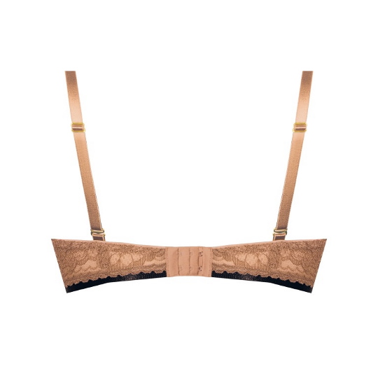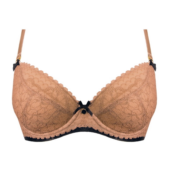 Бюстгальтер Elisabeth push up выполнен на косточках, с дополнительными боковыми поддержками, чашки шитые, на тонком поролоне, со съёмными пуш-ап вкладышами, внутренняя сторона проложена хлопковым трикотажем, внешняя сторона кружевная. Бретельки отстёгиваются, регулируются по длине. На спине застёжка на удлинитель, количество крючков в ряду застёжки, увеличивается пропорционально размеру бюстгальтера. Фурнитура цвета золота, резинка по нижнему краю пояса и бантики контрастного черного цвета. Бюстгальтер идеально сочетается с трусиками Elisabeth.