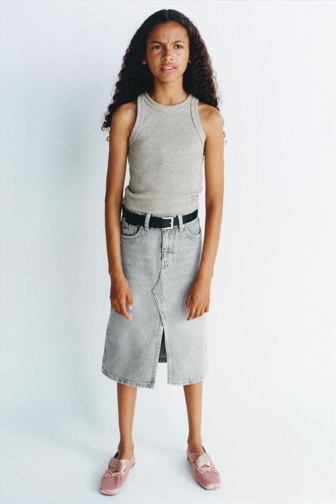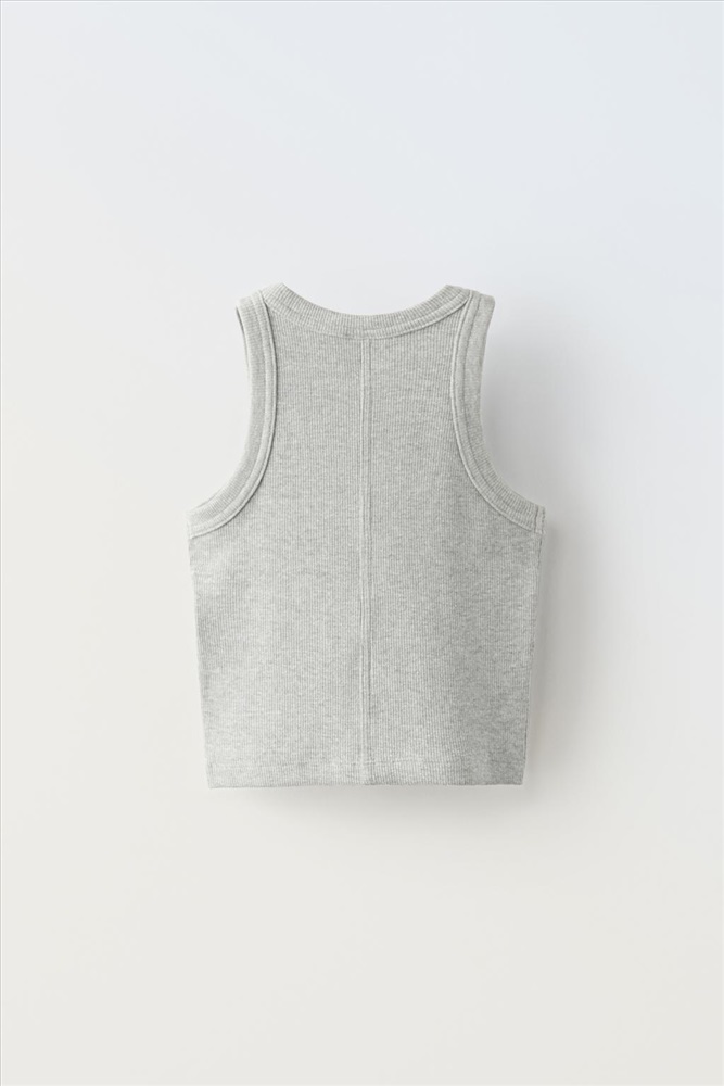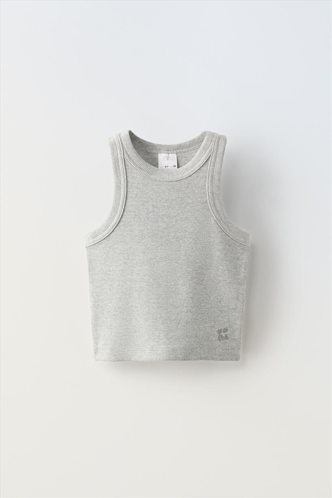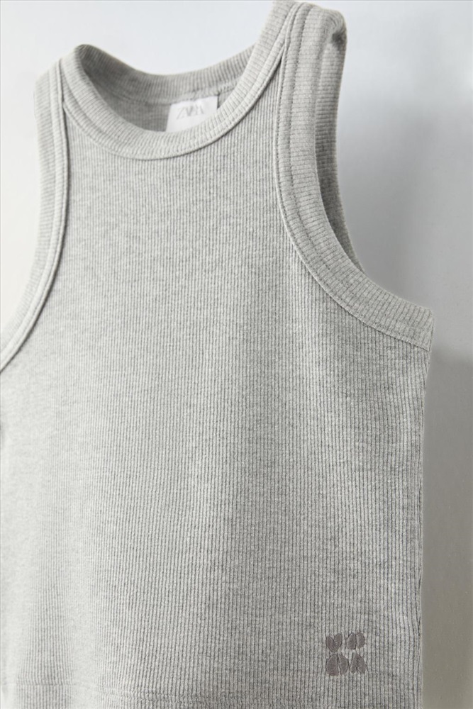 Sleeveless T-shirt with a round neck and an embroidered detail on the hem.