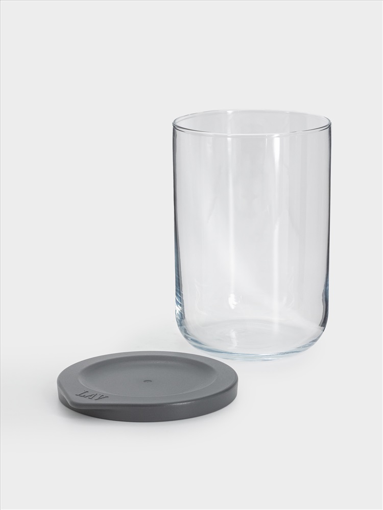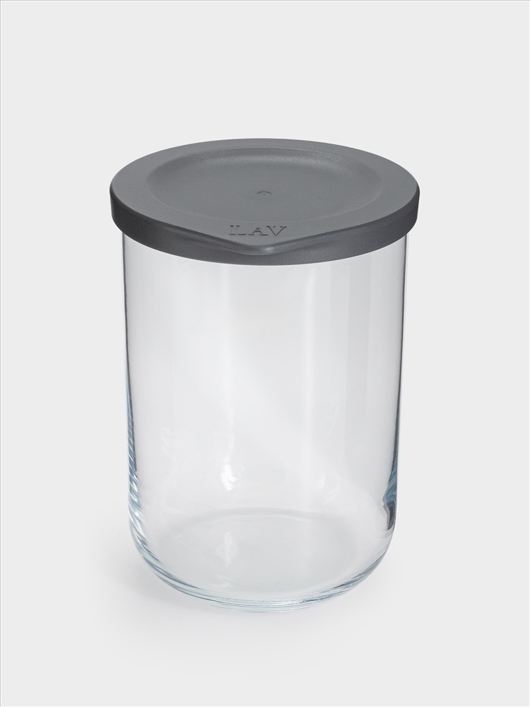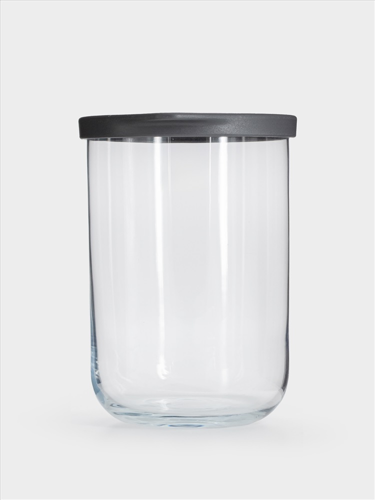 Емкость для хранения, 15х10 см, 1 л, стекло/пластик, серая, Basic