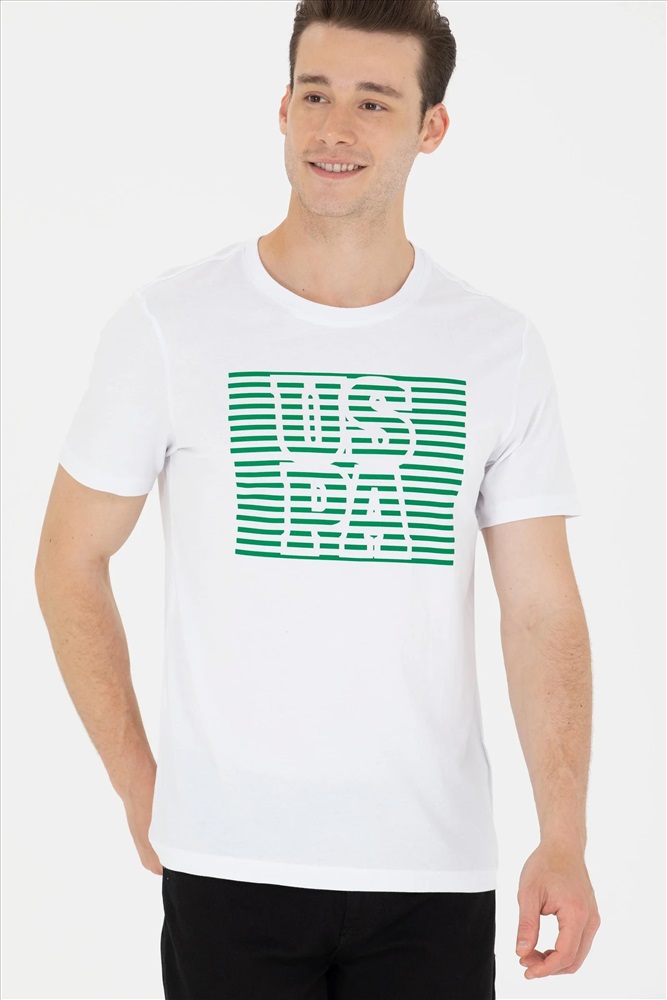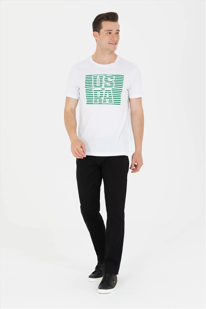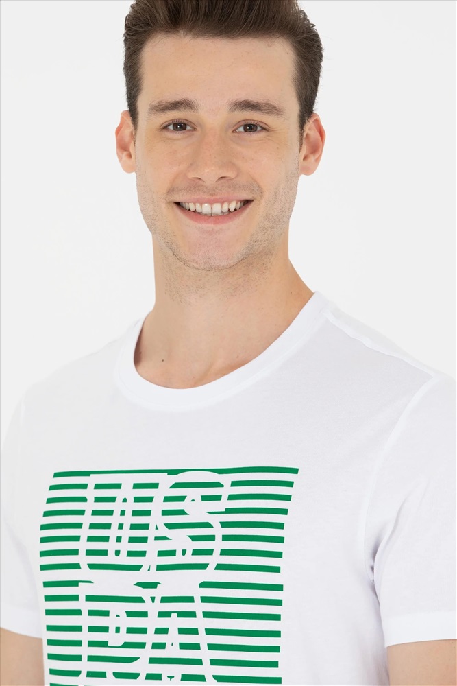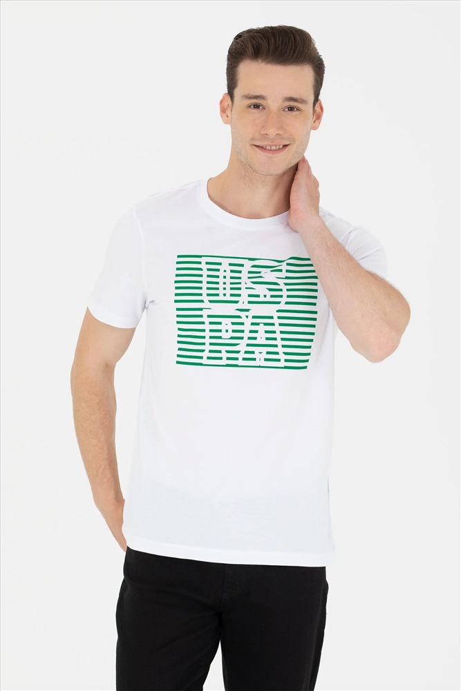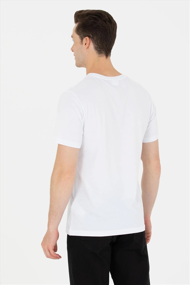 Erkek Beyaz Bisiklet Yaka Tişört