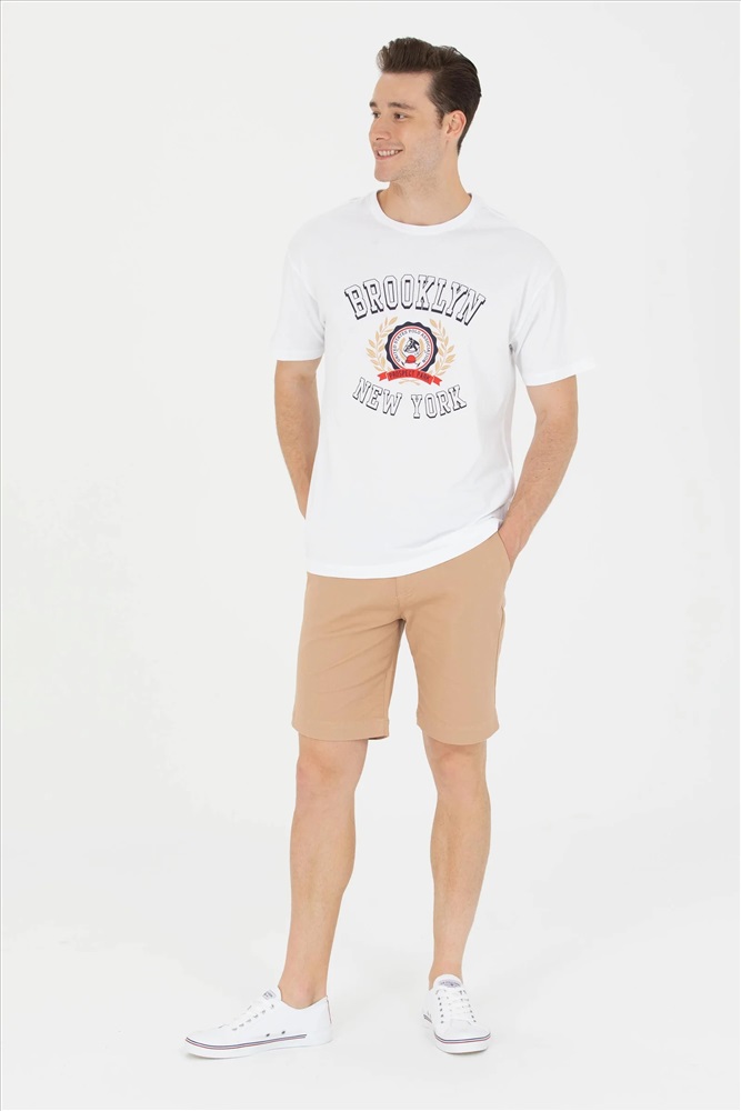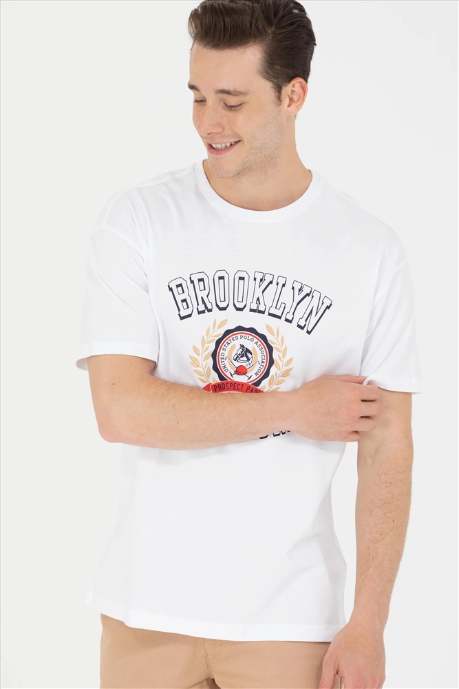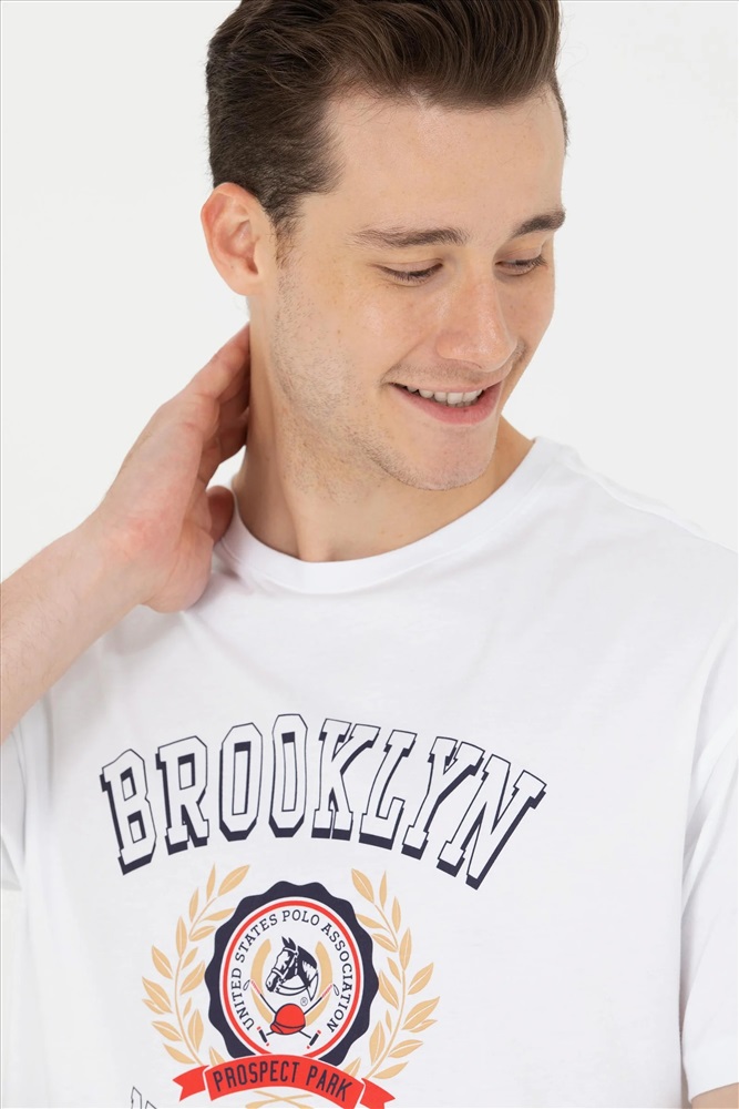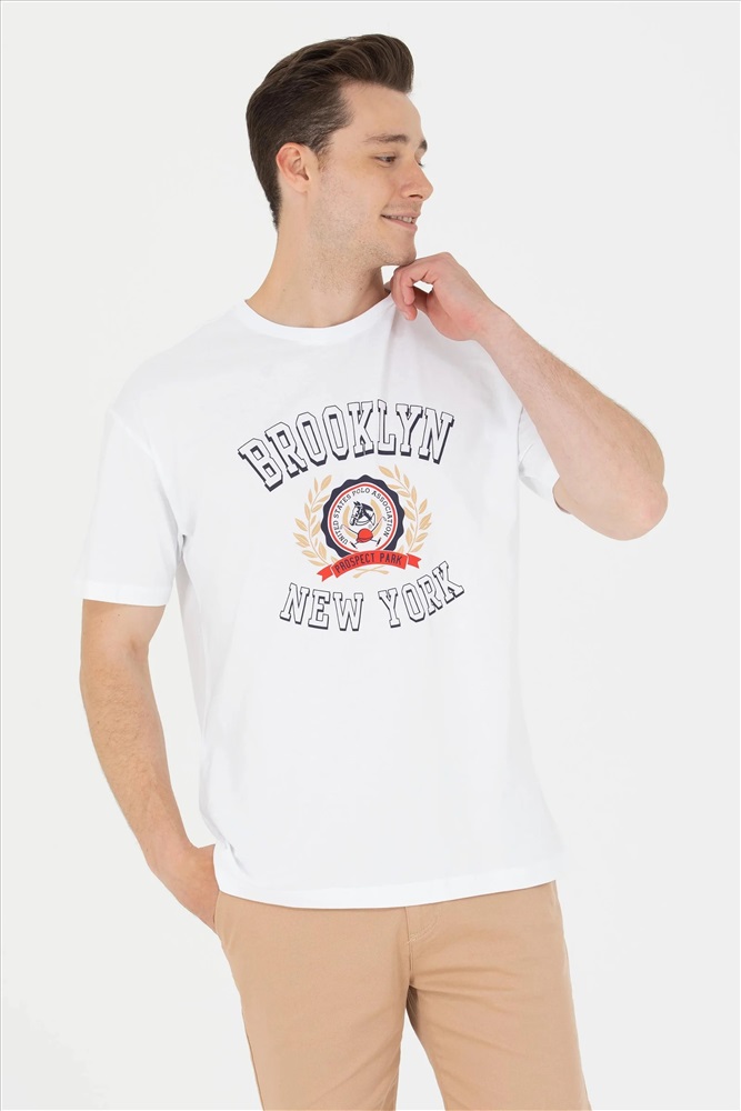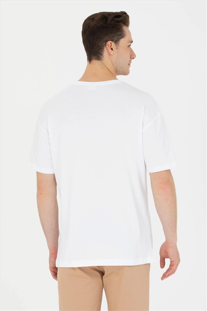 Erkek Beyaz Comfort Bisiklet Yaka Tişört