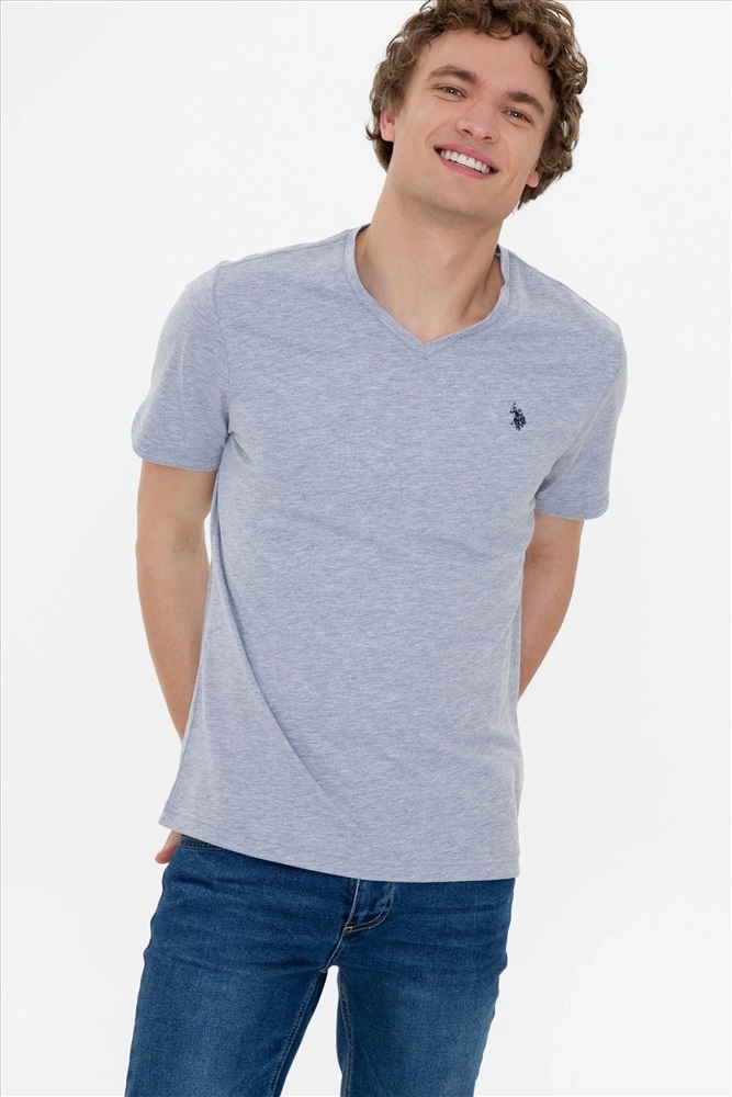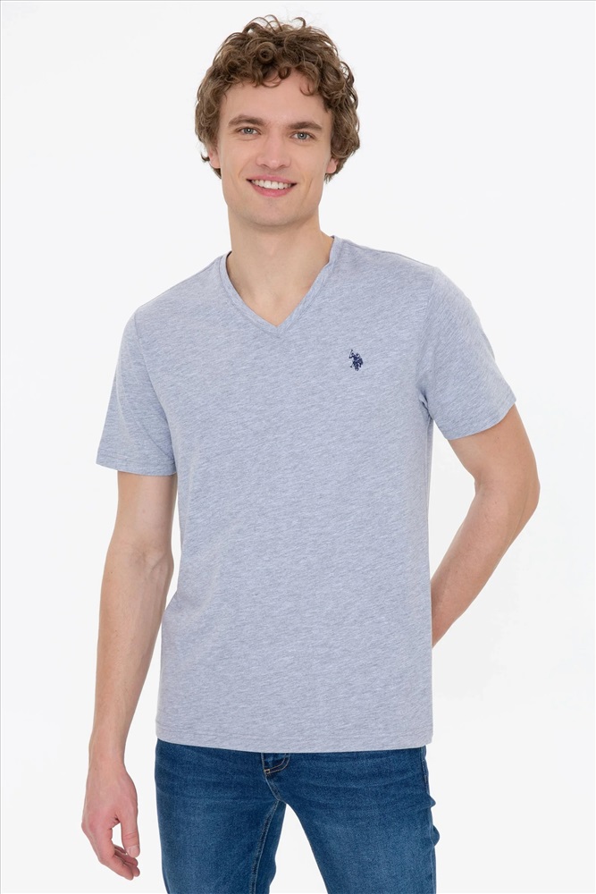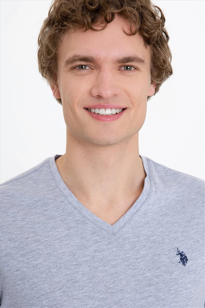 Erkek Gri Melanj Basic V Yaka Tişört