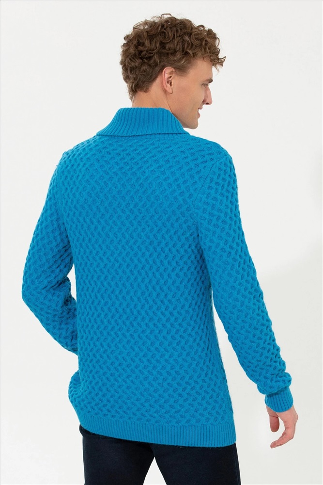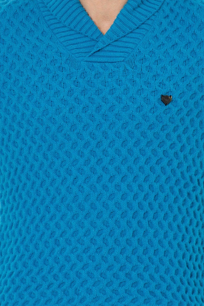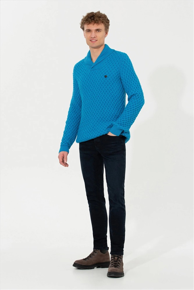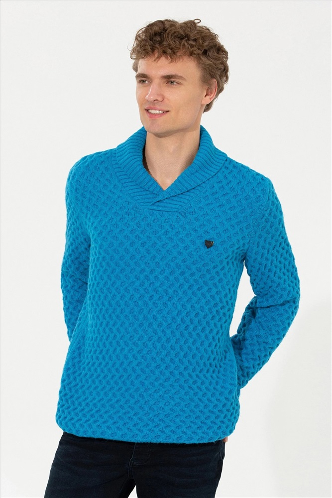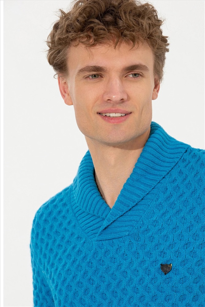 Erkek Kobalt Melanj Şal Yaka Triko Kazak