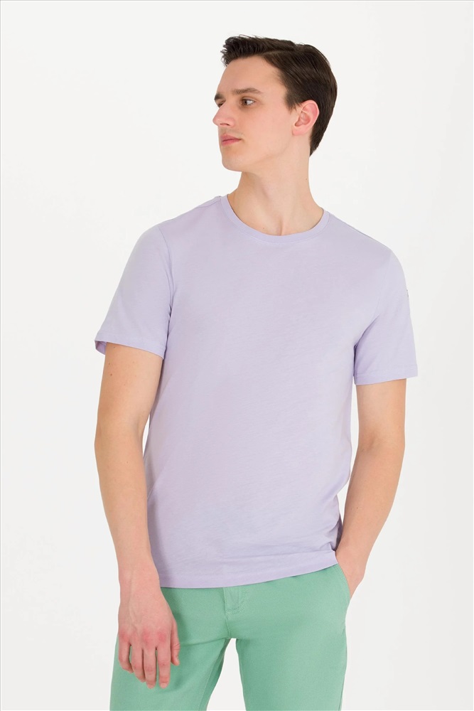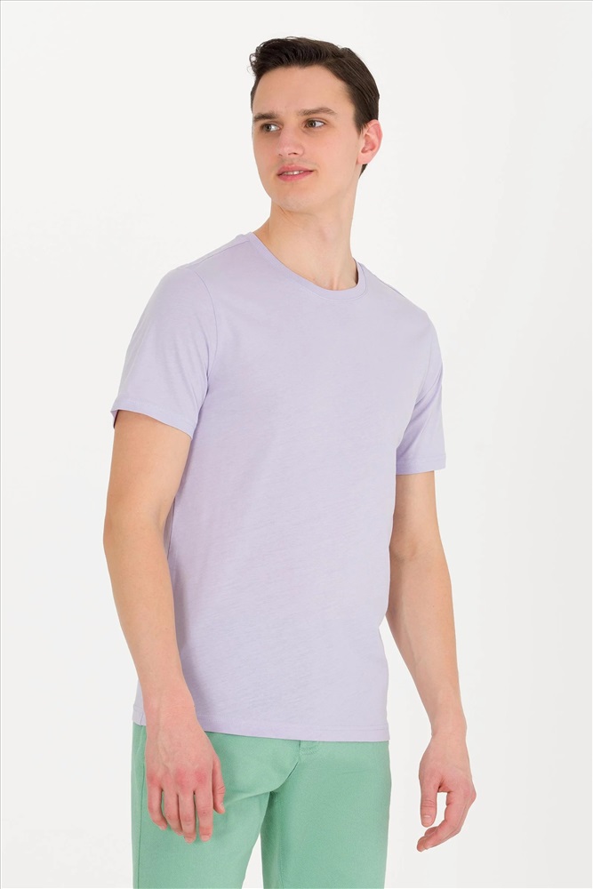 Erkek Lila Basic Bisiklet Yaka Tişört