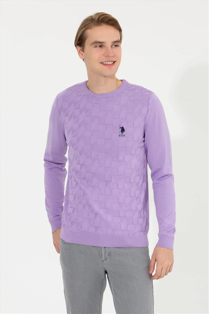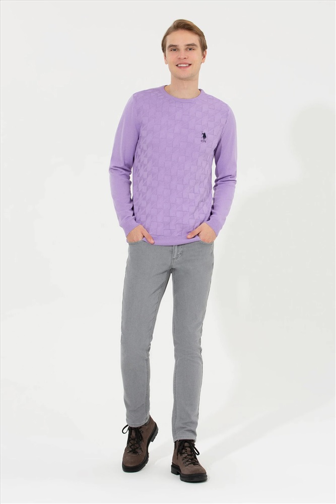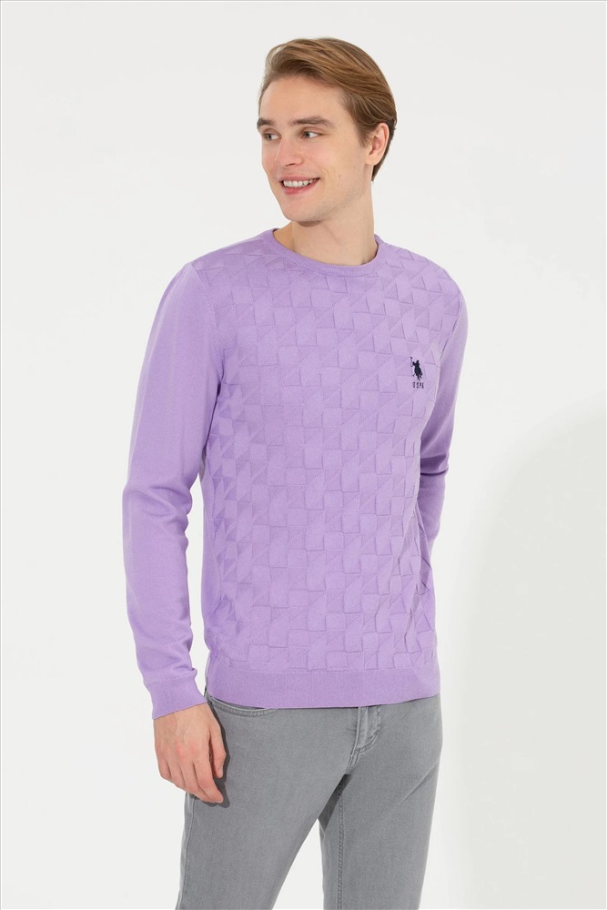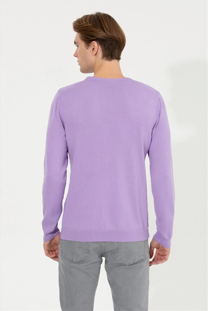 Erkek Lila Bisiklet Yaka Basic Triko Kazak