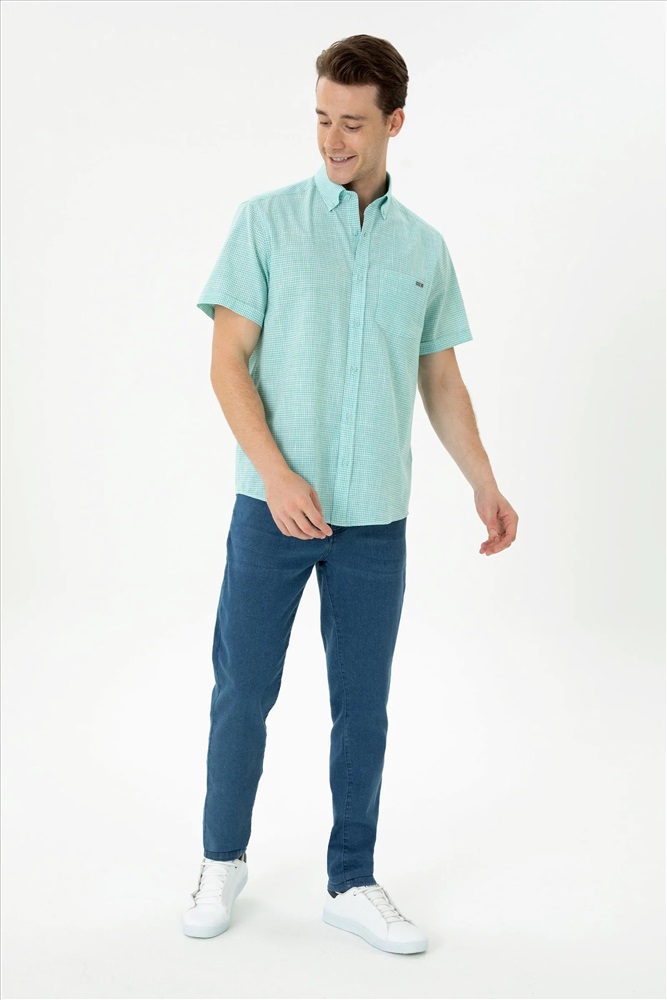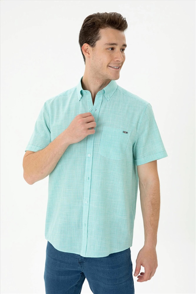 Erkek Mint Kısa Kollu Gömlek