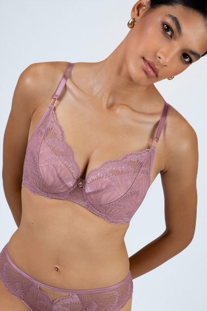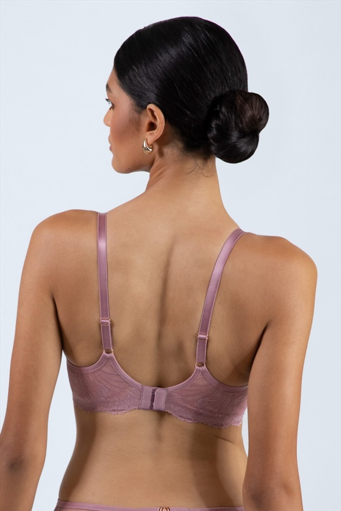 Бюстгальтер EssenzaRosa выполнен на основе бюста Sublime P-UP, косточках (на каркасах), с дополнительными боковыми поддержками, чашки шитые на тонком поролоне розового цвета, со съёмными пуш-ап вкладышами, внешняя сторона чашки и спинка из роскошного кружева, пояс продублирован эластичной сеткой. Бретельки не отстёгиваются, регулируются по длине. На спине застёжка на удлинитель, количество крючков в ряду застёжки, увеличивается пропорционально размеру бюстгальтера, фурнитура металлическая цвета розового золота. Бюстгальтер идеально сочетается с трусиками EssenzaRosa.