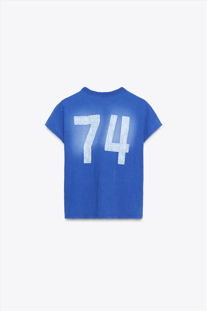 T-shirt made with faded-effect cotton. Featuring a round neck and short sleeves. Text detail on the front and numbers on the back.