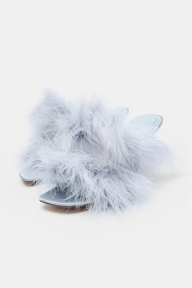 Heeled sandal shoes with straps on the front and feather detail. Mule style. High stiletto heel. Round toe. COMPOSITION, CARE & ORIGIN COMPOSITION UPPER 100% polyester LINING 100% polyester SOLE 100% polyurethane thermoplastic INSOLE 60% polyurethane