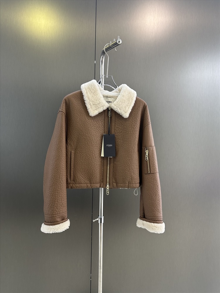 Fendi 2024 AW цельная импортная короткая куртка из немецкого меха с крокодиловым узором Оборудование и детали отлиты по индивидуальному заказу.