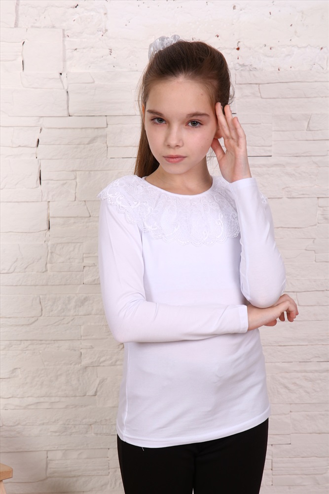 Состав: 92% хлопок; 8% лайкра Модель: Фиона блузка детская дл. рукав Тип товара: блузка Материал: кулирка с лайкрой | кулирка с лайкрой Бренд: Мурлыка Длина: средняя длина Рисунок: однотонные Рукав: длинный рукав Сезонность: лето | осень | весна | зима Силуэт: полуприлегающий Стиль: для школы Блузка для девочек дошкольного, младшего и старшего школьного возраста, из однотонного трикотажного полотна кулирка с лайкрой. Блузка полуприлегающего силуэта, с втачным рукавом, без застежки. Спереди и на спинке отсутствуют линии членения. Срез горловины обработан узкой окантовочной лентой из того же полотна в 4 сложения, с вложением присборенного кружева. Рукав одношовный, длинный. Низ рукава без манжеты, подогнут. Таблица размеров и веса