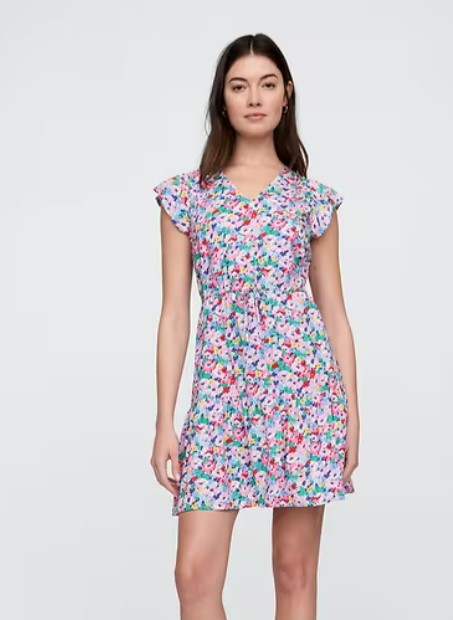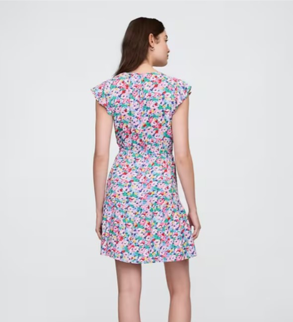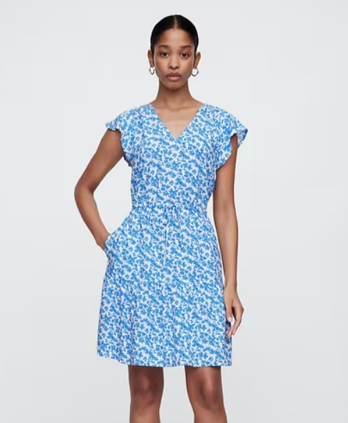 Flutter Sleeve Tie-Waist Mini Dress