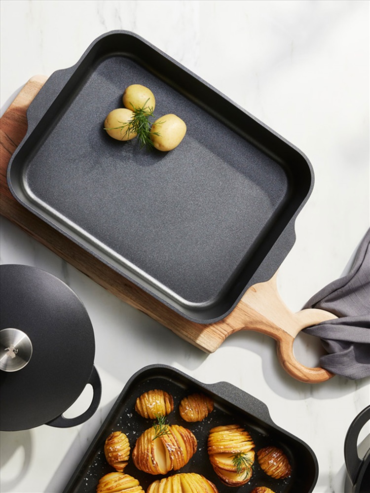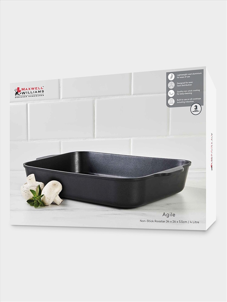 Форма для запекания, 34х26х5,5 см, с покрытием, алюминий, черная, Agile. Материал: алюминий (литой) с антипригарным покрытием. Форма для запекания из литого алюминия с антипригарным покрытием. Для всех типов плит, включая индукционные. Можно мыть в ПММ. Использовать в духовке до 210 градусов.
