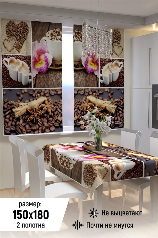 Сезонность: лето | осень | весна | зима Фотошторы для кухни из габардина смогут украсить любой интерьер, добавить яркости, свежести и поднять настроение. Это идеальный вариант для вашей кухни. В комплекте идут 2 полотна, каждое шириной 150 см. и высотой 180 см. Уход деликатная стирка при температуре 30 градусов С.