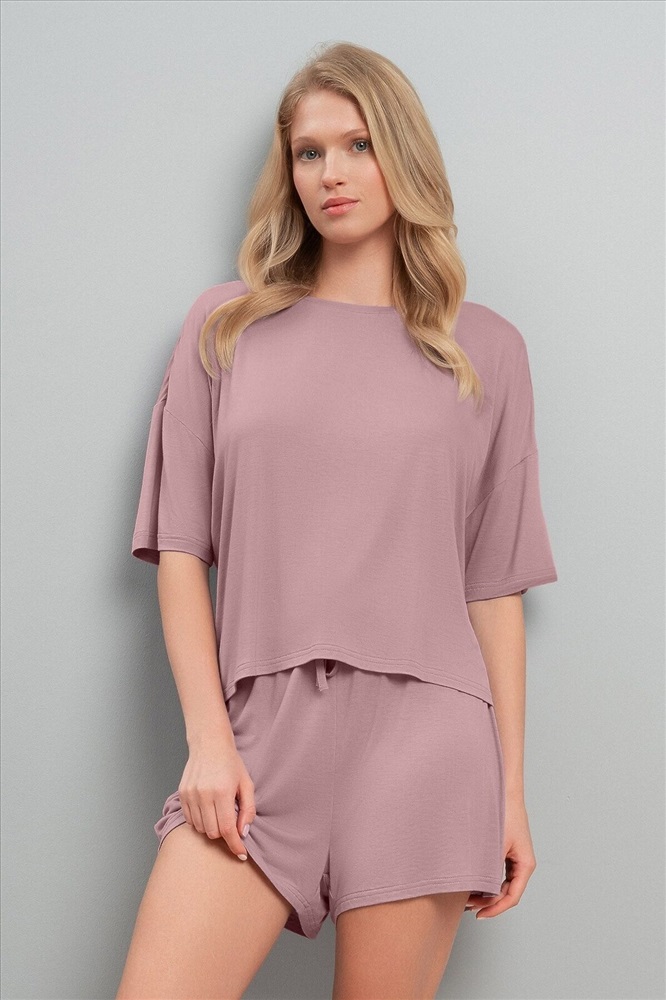 ID товара: 1227285 Состав: 95% Вискоза 5% Эластан Сезон: Весна/Лето Стильная домашняя одежда от торговой марки Индефини в виде футболка с шортами, самая популярная, можно носить в любое время года. Такой вид одежды подарит комфорт и уют дома. Комментарии к товару