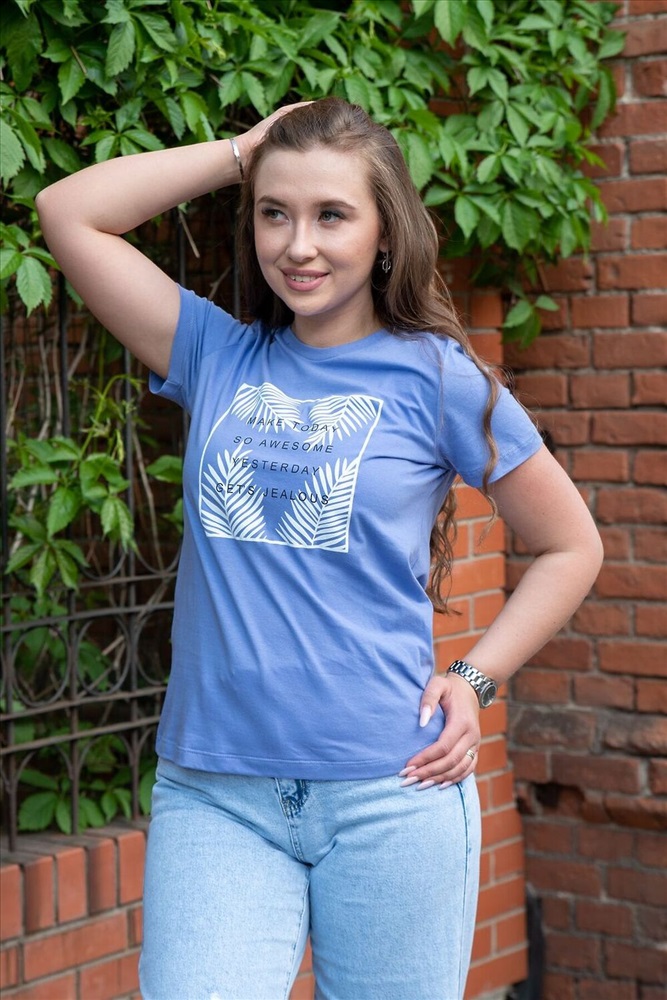ID товара: 1024260 Состав: 100% Хлопок Сезон: Весна/Лето Длина: Средняя Фасон: Прямой Рукав: короткие Вырез горловины: Округлый Рисунок: Надпись Декоративные элементы: Принт Основная ткань: Хлопок Стиль: повседневный Вид ткани: Кулирка пенье Страна бренда: Россия Страна производства: Россия Футболка из высококачественного 100% хлопка, прямого силуэта и с круглым вырезом - настоящая классика любого женского гардероба. Она с легкостью впишется в любой повседневный образ и комбинируется с множеством одежды. На полочке принт шелкография. Надпись переводится как Сделай сегодняшний день таким классным, чтобы вчерашний день позавидовал. Модель рассчитана на рост 164-170см. Комментарии к товару