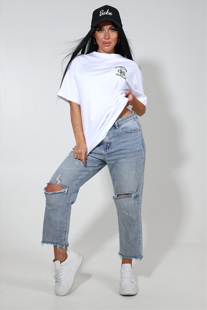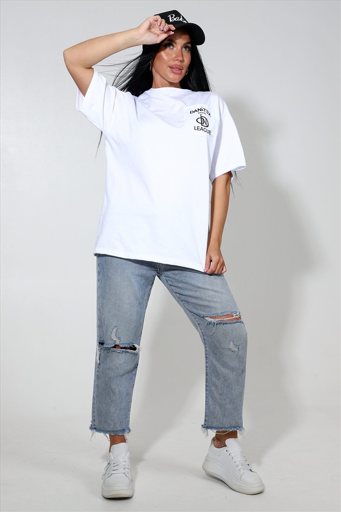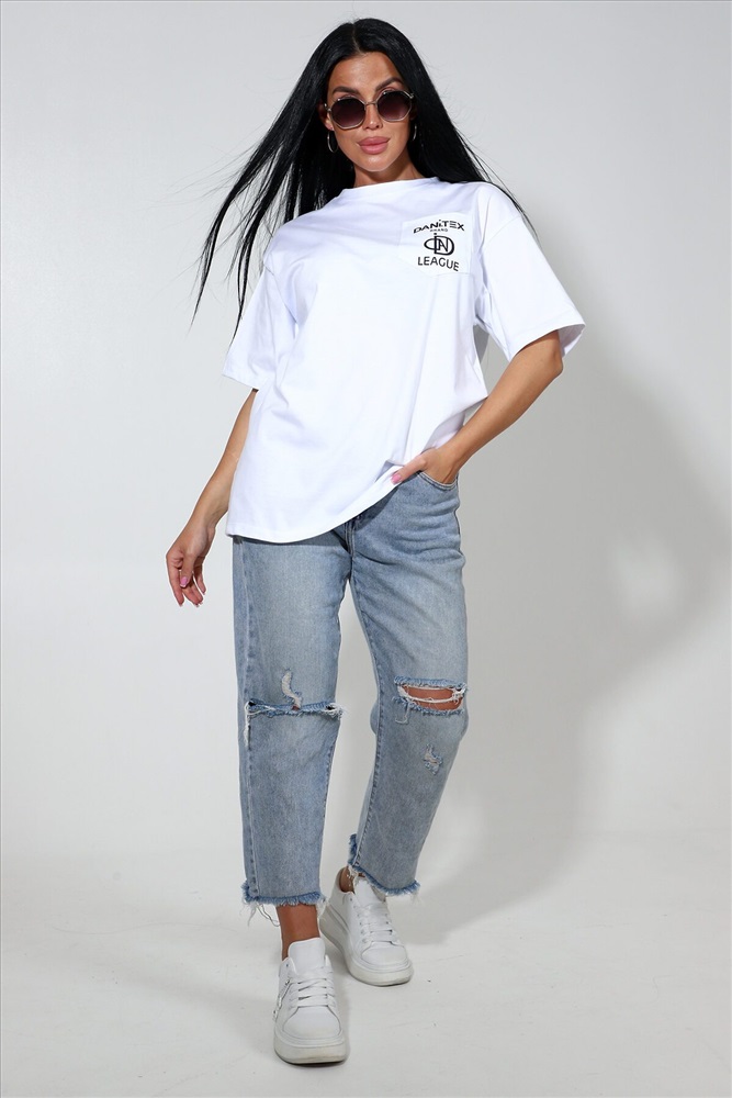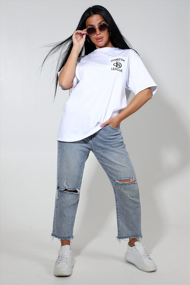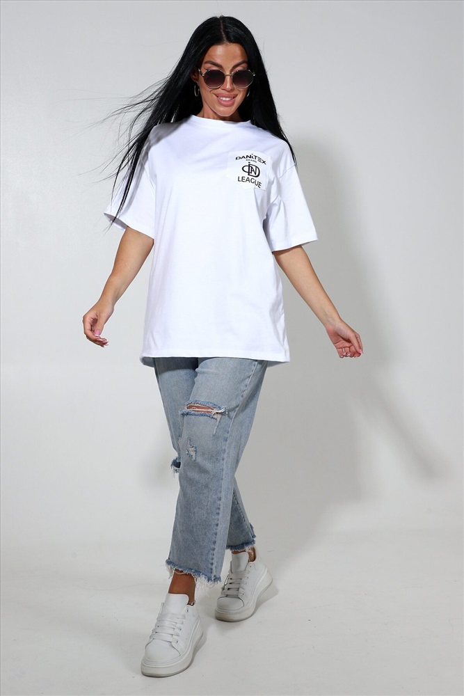 Базовая женская футболка оверсайз из 100% хлопка с нагрудным карманом и печатью. Футболка свободного кроя, хорошо сочетается с джинсами, брюками, юбкой, как в заправленном виде, так и навыпуск. Легко создать спортивный или повседневный стиль. Плотность ткани 180гр/м2.