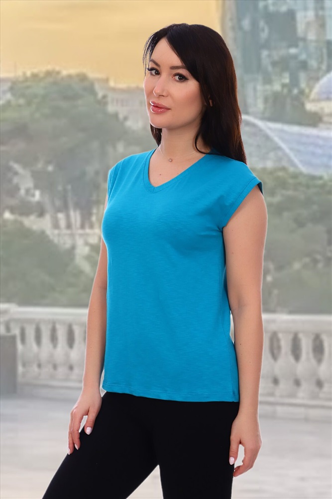 Страна производства: Россия Футболка полуприлегающего силуэта с v - образным вырезом и чуть спущенной линией плеча.
