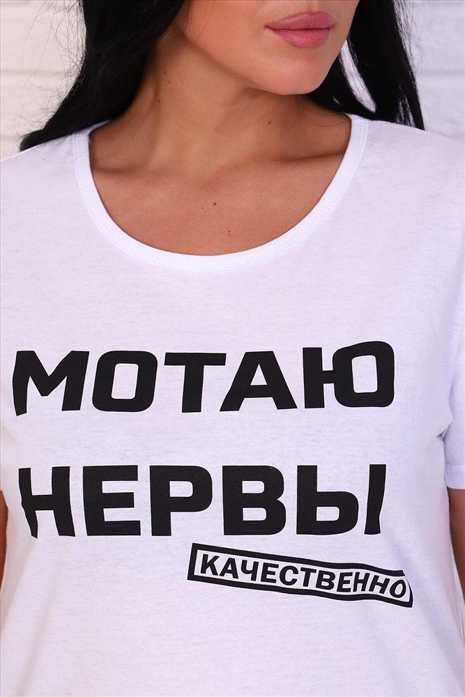 ID товара: 767342 Состав: 100% хлопок Сезон: Весна/Лето Длина: Средняя Фасон: Прямой Рукав: Короткий Вид застежки: Без застежки Вырез горловины: Округлый Рисунок: Надпись Декоративные элементы: Принт Основная ткань: 100% вискоза | Кулирка Стиль: Повседневный Страна бренда: Россия Страна производства: Россия Футболка женская выполнена из 100% хлопка. Изделие приталенного кроя с короткими рукавами и округлым вырезом горловины. Благодаря стильному дизайну футболка с оригинальными надписями отлично смотрится в тандеме с джинсами, шортами, кедами, кроссовками или ботинками. Отличный вариант на каждый день! В любое время года станет незаменимой и любимой вещью. Комментарии к товару