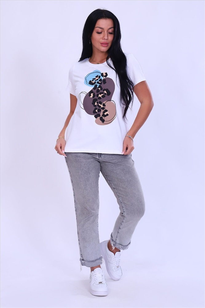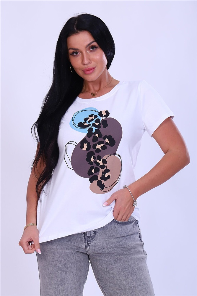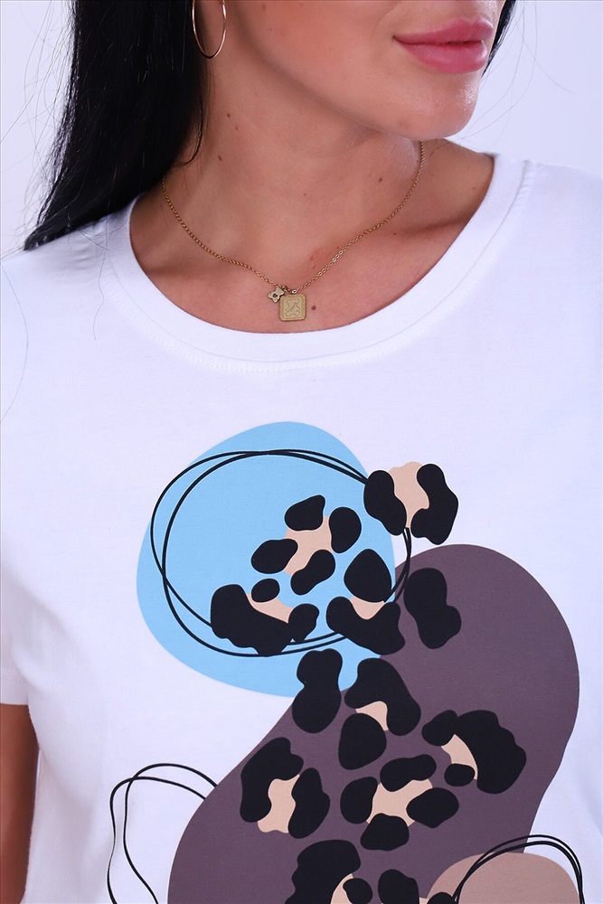 ID товара: 810377 Состав: 95% хлопок, 5% лайкра Сезон: Весна/Лето Длина: Полная Фасон: Прямой Рукав: Короткий Вид застежки: Без застежки Вырез горловины: Округлый Рисунок: Фантазийный Декоративные элементы: Принт Основная ткань: Хлопок | Кулирка с лайкрой Стиль: Повседневный Страна бренда: Россия Страна производства: Россия Футболка женская выполнена из хлопка с добавлением лайкры. Изделие приталенного кроя с короткими рукавами и округлым вырезом горловины. Благодаря стильному дизайну футболка с оригинальным принтом отлично смотрится в тандеме с джинсами, шортами, кедами, кроссовками или ботинками. Отличный вариант на каждый день! В любое время года станет незаменимой и любимой вещью. Комментарии к товару