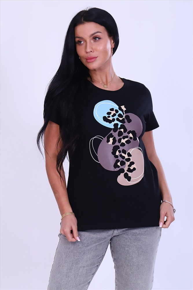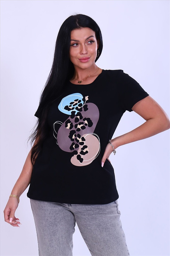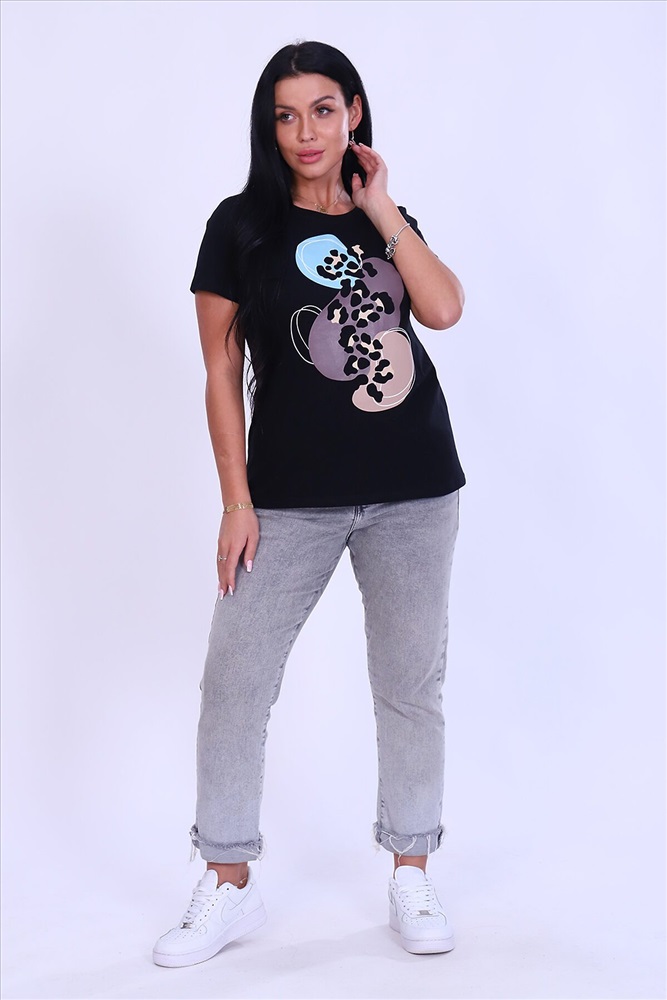 ID товара: 810378 Состав: 95% хлопок, 5% лайкра Сезон: Весна/Лето Длина: Полная Фасон: Прямой Рукав: Короткий Вид застежки: Без застежки Вырез горловины: Округлый Рисунок: Фантазийный Декоративные элементы: Принт Основная ткань: Хлопок | Кулирка с лайкрой Стиль: Повседневный Страна бренда: Россия Страна производства: Россия Футболка женская выполнена из хлопка с добавлением лайкры. Изделие приталенного кроя с короткими рукавами и округлым вырезом горловины. Благодаря стильному дизайну футболка с оригинальным принтом отлично смотрится в тандеме с джинсами, шортами, кедами, кроссовками или ботинками. Отличный вариант на каждый день! В любое время года станет незаменимой и любимой вещью. Комментарии к товару
