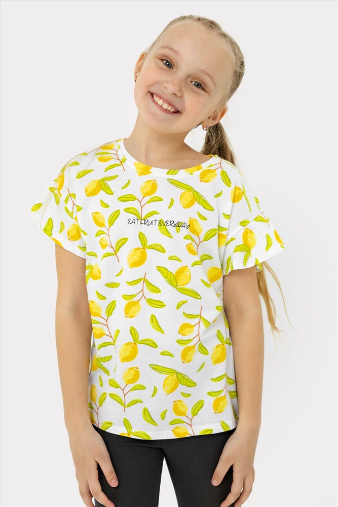 Страна производства: Россия Футболка из трикотажного кулирного полотна. Силуэт прямой. Перед и спинка без швов и рельефов. Рукава короткие. Горловина круглая, с обтачкой из рибаны. Стильная футболка с ярким дизайном!
