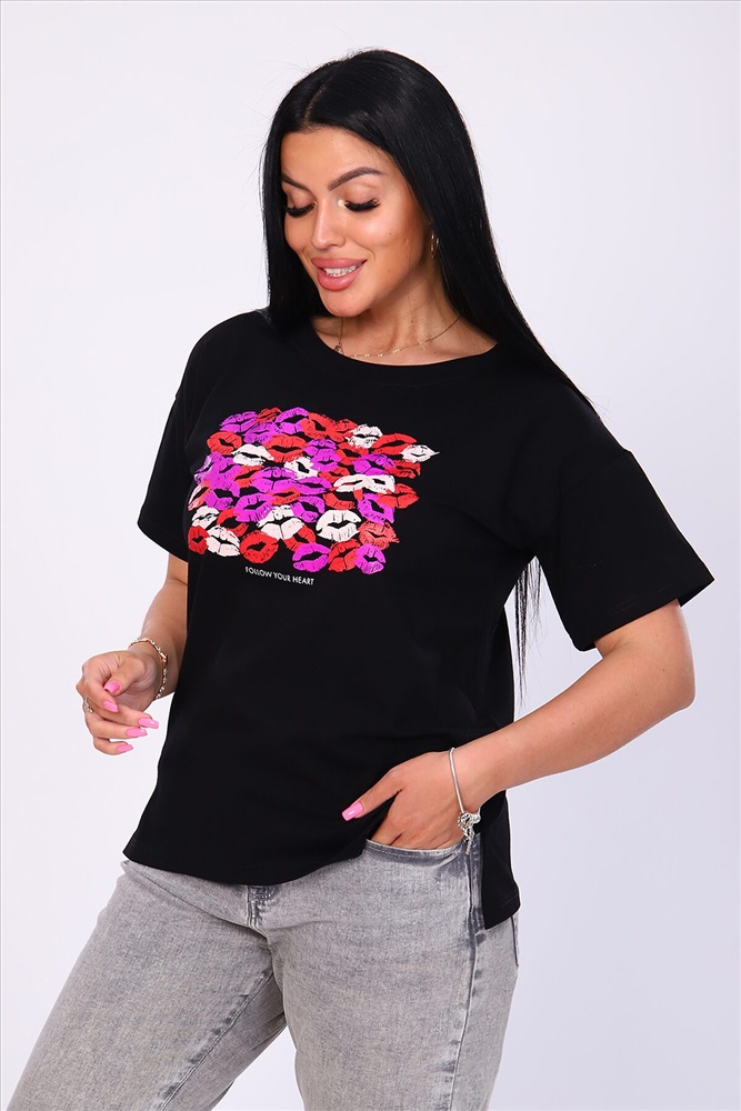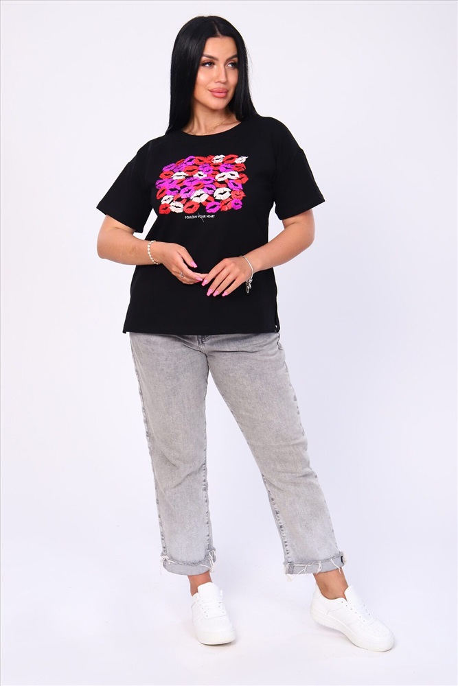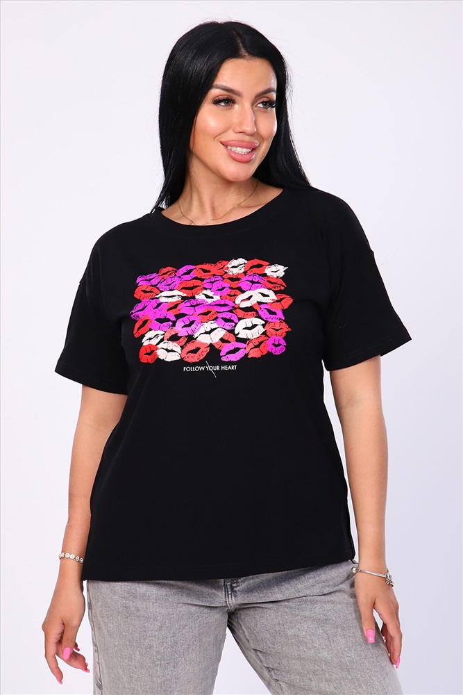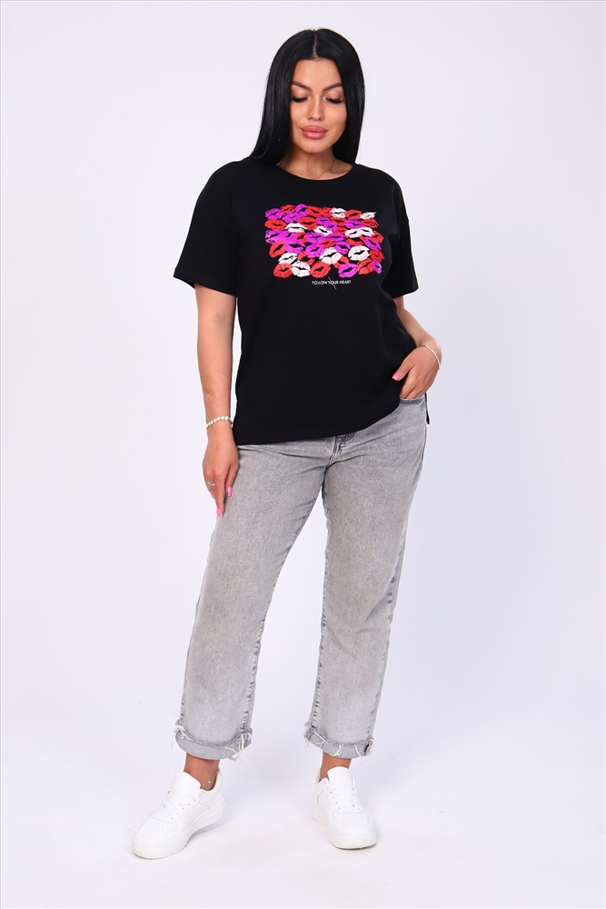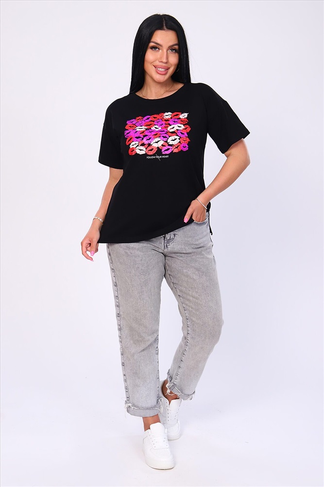 ID товара: 869106 Состав: 95% Хлопок; 5% Лайкра Сезон: Весна/Лето Длина: Средняя Фасон: Свободный крой Рукав: Короткие Вырез горловины: Округлый Рисунок: Фантазийный Декоративные элементы: Печатный принт Основная ткань: Хлопок | Кулирка с лайкрой Стиль: Повседневный Страна бренда: Россия Страна производства: Россия Женская футболка принт "губы" модель в стиле oversize, со спущенным плечом. Отлично смотрится на разных типах фигур. Футболка оверсайз идеально подходит для создания непринужденного образа. Модель выполнена из хлопка с добавлением лайкры высокого качества. Подходит для занятий спортом, для дома, а также как подарок на праздник, день рождения, юбилей, 8 марта, новый год. Принт сохраняется после множества стирок, ткань приятна к телу. Комментарии к товару