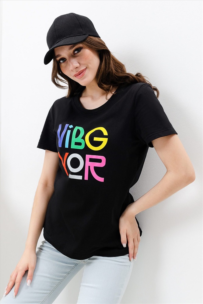 ID товара: 908582 Состав: 100% Хлопок Сезон: Весна/Лето Длина: Средняя Фасон: Приталенная Рукав: короткие Вырез горловины: Округлый Рисунок: Надпись Декоративные элементы: Печатный принт Основная ткань: Хлопок Стиль: повседневный Вид ткани: Кулирка Страна бренда: Россия Страна производства: Россия Мягкая трикотажная футболка приталенного силуэта с разноцветным принтом выполнена из 100% хлопка, который не просвечивает. Незаменимая вещь на весну и лето. Стильная модная футболка с короткими рукавами сочетается как со спортивными штанами, так и с классическими брюками, юбками, шортами. Идеальна под пиджак, жакет, кардиган. Это универсальная вещь, которая прекрасно дополнит ваш гардероб и поможет создать интересные образы не только в летние теплые дни, но и в зимнее время года. Подходит для занятий спортом, тренировок, фитнеса, бега, йоги, баскетбола, волейбола, хип хопа, а также для физкультуры. Комментарии к товару