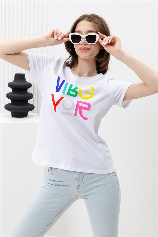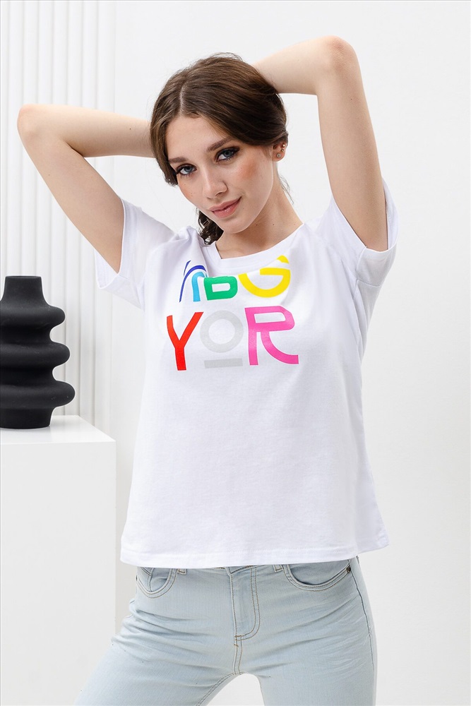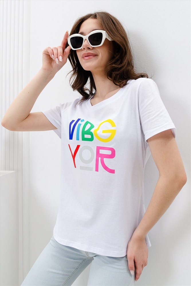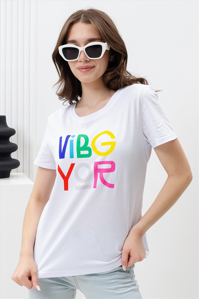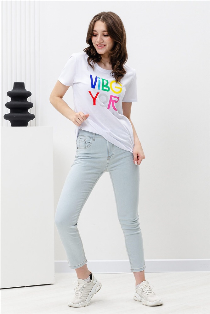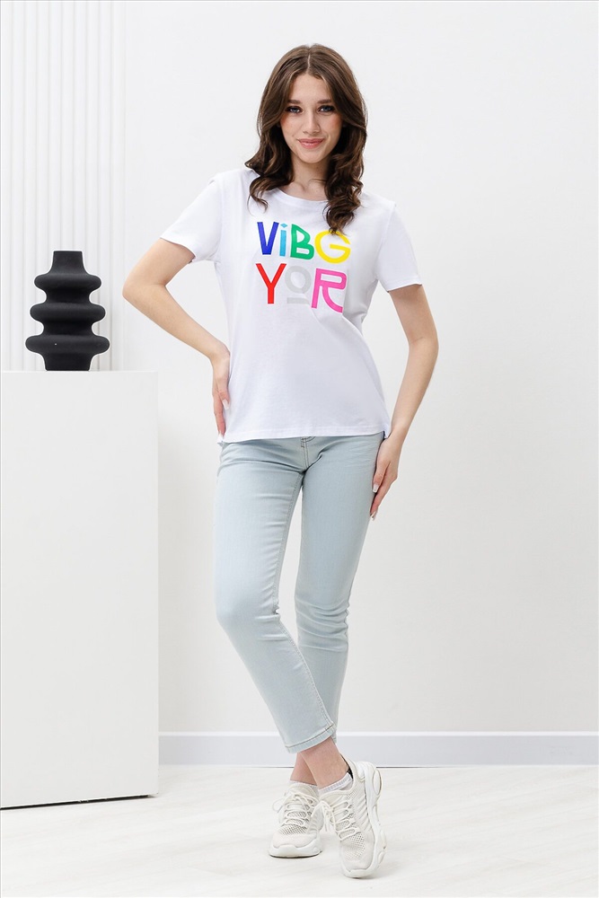 ID товара: 908583 Состав: 100% Хлопок Сезон: Весна/Лето Длина: Средняя Фасон: Приталенная Рукав: короткие Вырез горловины: Округлый Рисунок: Надпись Декоративные элементы: Печатный принт Основная ткань: Хлопок Стиль: повседневный Вид ткани: Кулирка Страна бренда: Россия Страна производства: Россия Мягкая трикотажная футболка приталенного силуэта с разноцветным принтом выполнена из 100% хлопка, который не просвечивает. Незаменимая вещь на весну и лето. Стильная модная футболка с короткими рукавами сочетается как со спортивными штанами, так и с классическими брюками, юбками, шортами. Идеальна под пиджак, жакет, кардиган. Это универсальная вещь, которая прекрасно дополнит ваш гардероб и поможет создать интересные образы не только в летние теплые дни, но и в зимнее время года. Подходит для занятий спортом, тренировок, фитнеса, бега, йоги, баскетбола, волейбола, хип хопа, а также для физкультуры. Комментарии к товару