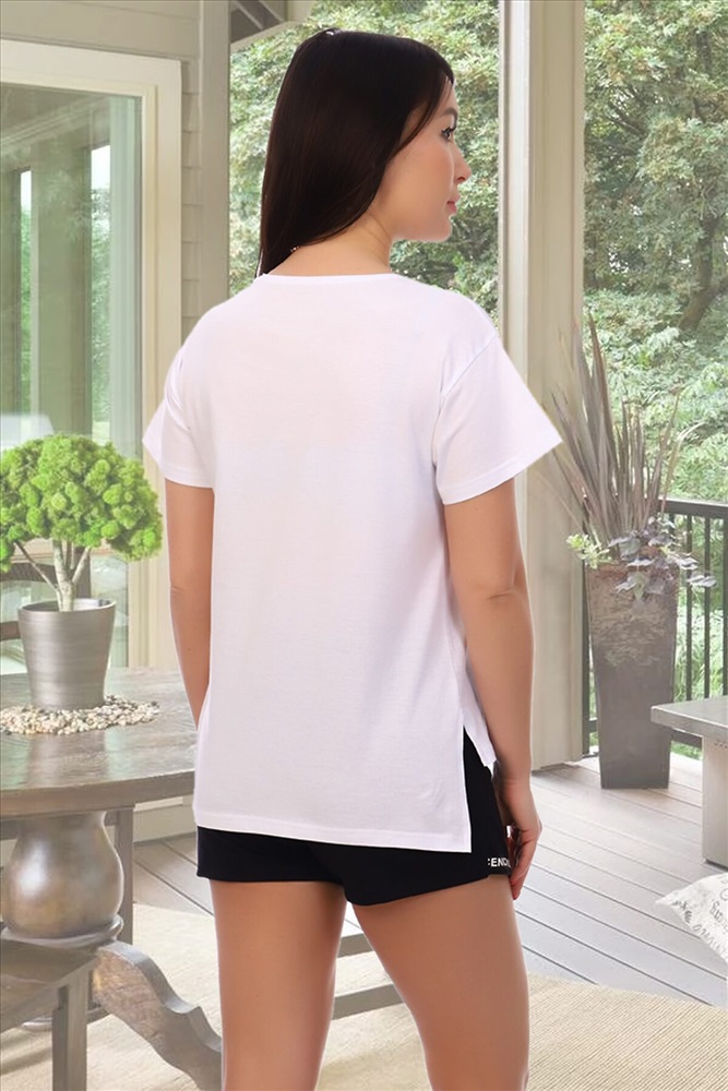 Футболка белая свободного покроя, из кулирки белого цвета, перед отделан отделочной тесьмой, по бокам разрезы, незаменимая вещь в летнем гардеробе. Идеально смотрится с брюками или шортами из этой же коллекции.
