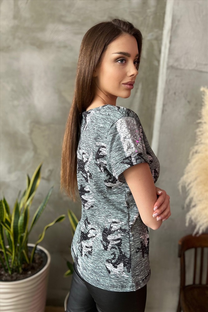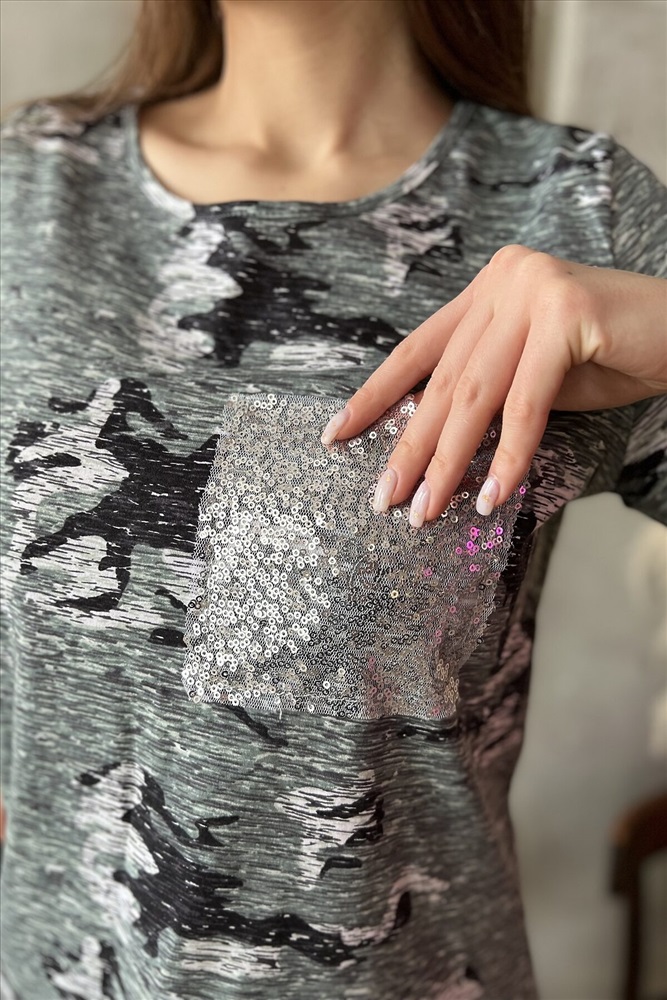 ID товара: 745364 Состав: 100% Хлопок Сезон: Демисезон Длина: Средняя Фасон: Полуприлегающий Рукав: Короткие Вырез горловины: Округлый Рисунок: Камуфляж Тип карманов: накладной Декоративные элементы: Пайетки Основная ткань: Хлопок | Кулирка Стиль: Повседневный Страна бренда: Россия Страна производства: Россия Футболка полуприлегающего силуэта, с округлой горловиной, длиной до середины бедра. Рукав втачной, короткий, с манжетом и вставкой с пайетками. На полочке расположен декоративный карман с пайетками Комментарии к товару