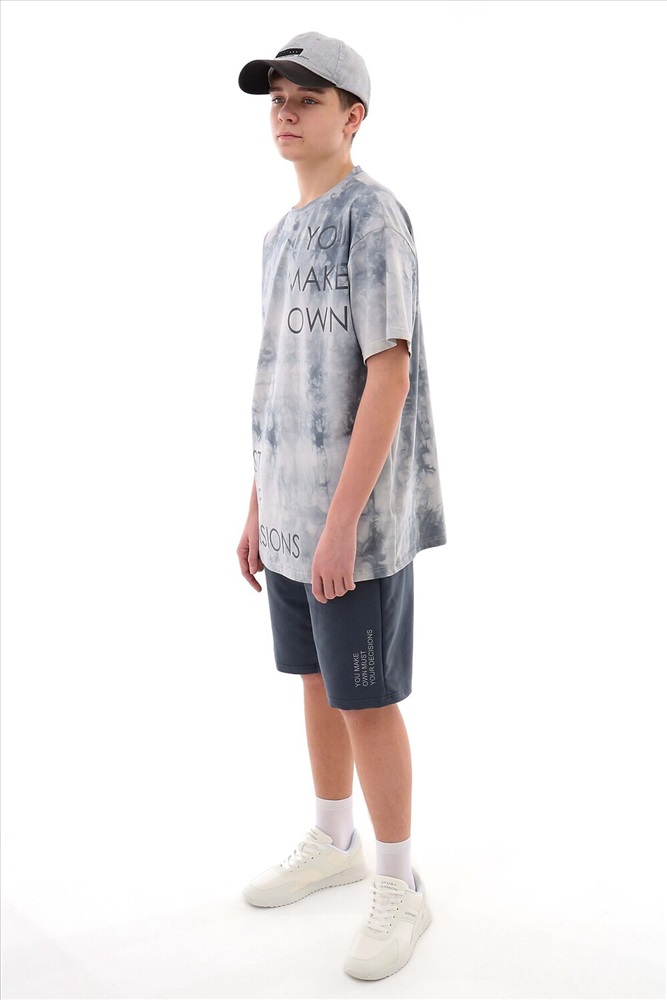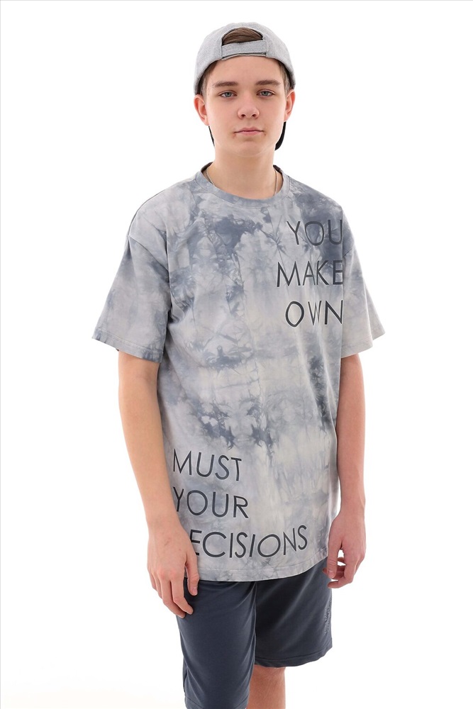 Футболка для мальчика классического прямого кроя. В зависимости от фигуры и приобретённого размера она может выглядеть как оверсайз. В комплекте с шортами получается молодёжный летний костюм, который будет уместен в любой ситуации. В нём можно пойти на практику в школу, на тренировку в спортзал, на утреннюю пробежку или вечерний кроссфит. Отличное решение для поездки на море или просто в южные регионы. Футболка неотъемлемая часть гардероба всех мальчиков, юношей, парней. В составе ткани подростковой футболки преобладает хлопок. Майка в расцветке Тай Дай подходит для лета и для зимы, ведь её можно носить под кофтой, свитшотом и худи. Добавленный эластан придаёт натуральным нитям ткани упругие свойства, а также делает её поверхность гладкой и шелковистой. Полотно с эластаном способно увеличиваться в размере в несколько раз без потери своей формы. В коллекции представлены футболки в двух цветах: оливковый и серый. Приобретая сразу два цвета, вы получаете разные образы. Футболка имеет износостойкий принт с надписями, которые остаются в первоначальном виде даже после многократных стирок. Немаловажная деталь, что рисунки напрямую перекликаются с шортами, которые мы предлагаем в комплект футболкам, при этом выглядят абсолютно самодостаточно, поэтому наши футболки можно легко комплектовать с любыми джинсами, брюками, спортивными трико, домашними бермудами, шортами любой длины.