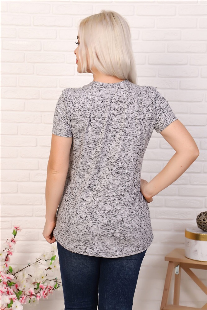 Страна производства: Россия Футболка женская, рукав короткий втачной. Горловина окантована трикотажной бейкой, низ рукавов и изделия обработаны подгибочным швом. Модель свободного кроя.