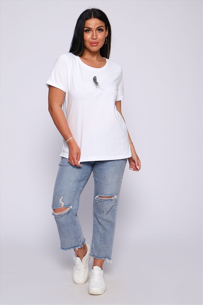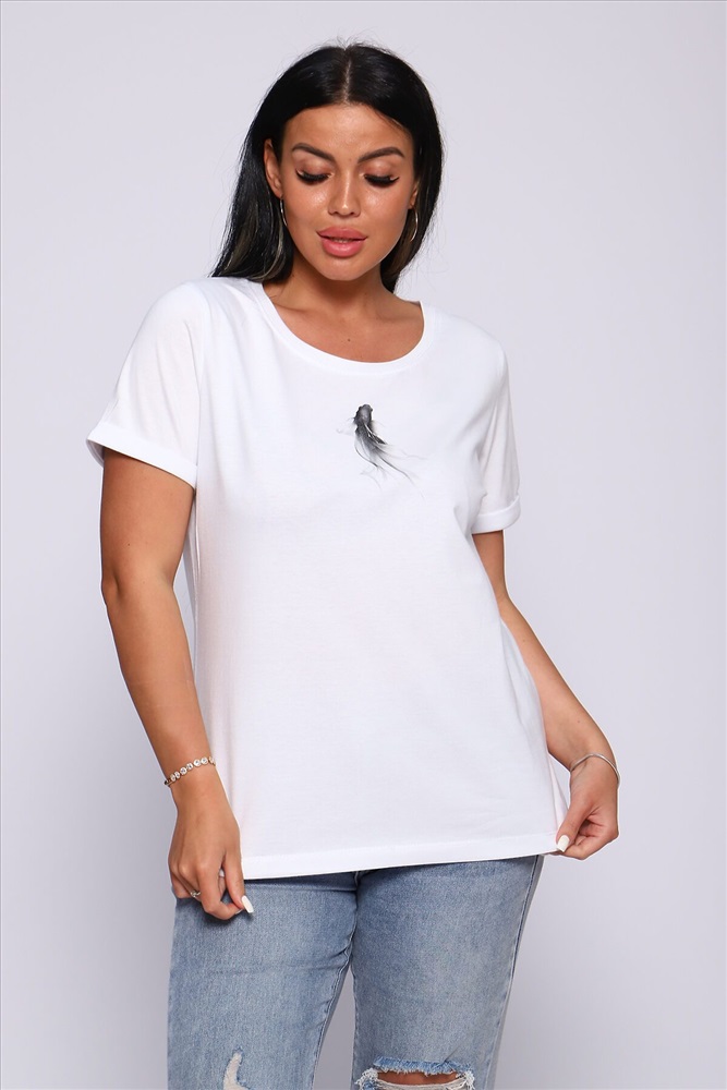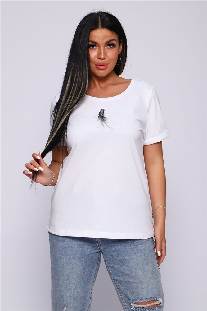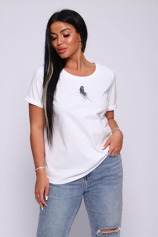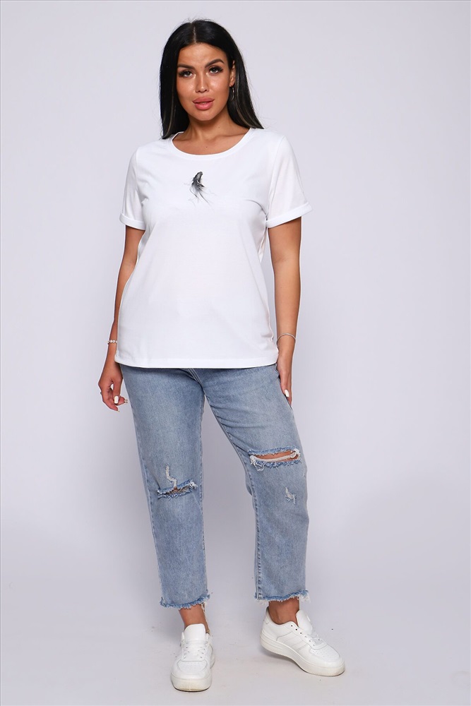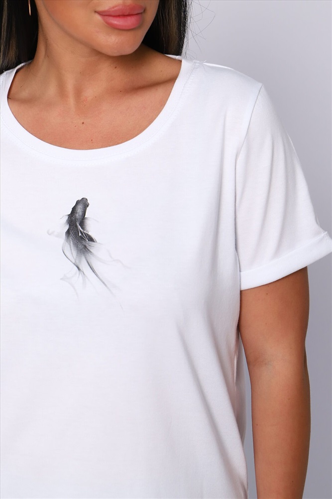 ID товара: 908438 Состав: Хлопок 100% Сезон: Весна/Лето Длина: Средняя Фасон: Свободный крой Рукав: короткие Вырез горловины: Округлый Рисунок: Фантазийный Декоративные элементы: Печатный принт Основная ткань: Хлопок Стиль: повседневный Вид ткани: Кулирка Страна бренда: Россия Страна производства: Россия Базовая белая женская футболка из 100% хлопка с принтом в виде рыбки. Футболка с втачными рукавами и манжетами. Данная модель хорошо сочетается с джинсами, брюками, юбкой, как в заправленном виде, так и навыпуск. Легко создать спортивный или повседневный стиль. Плотность ткани 180 гр/м2. На фото представлена футболка 48 размера.Рекомендуемый режим стирки 30 t. Комментарии к товару
