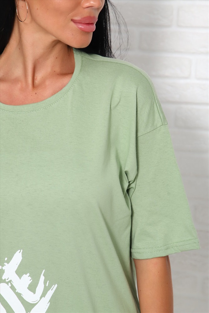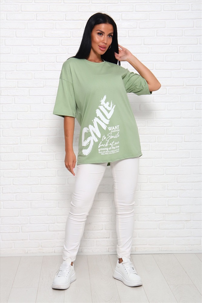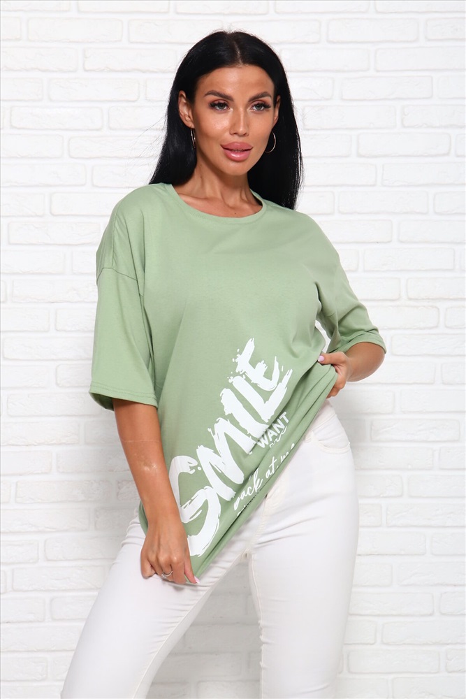 Страна производства: Россия Модель свободного силуэта с принтом шелкография. Горловина круглая обработана обтачкой. Рукав спущенный, выше локтя.