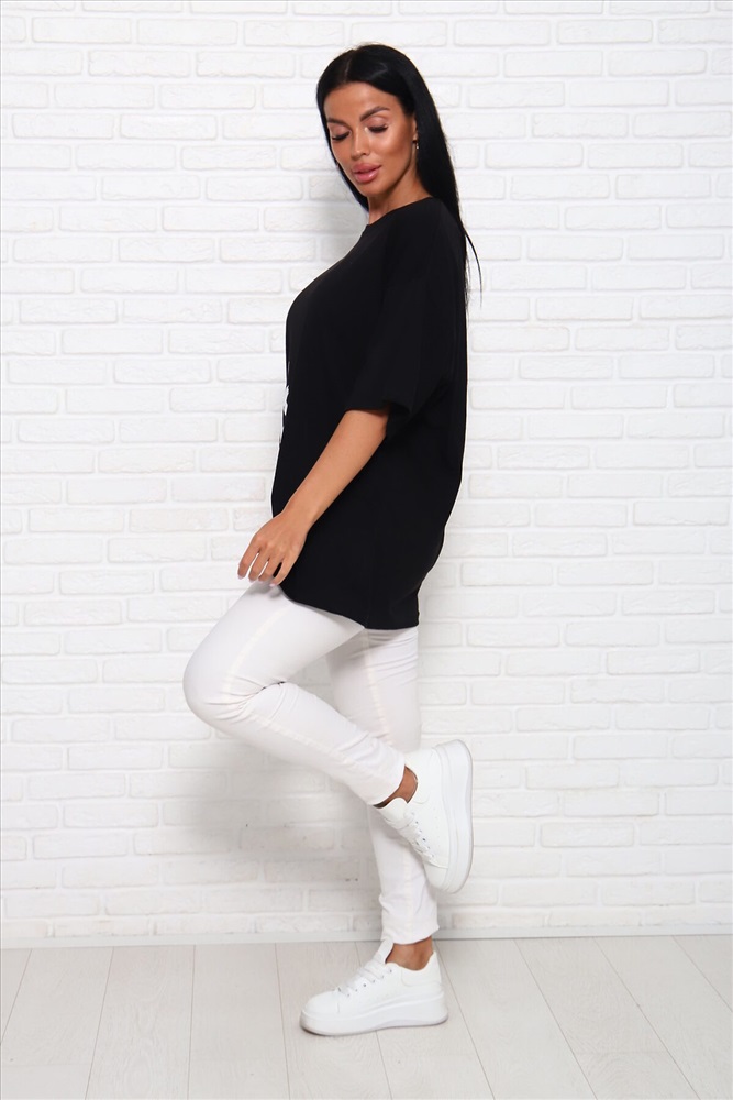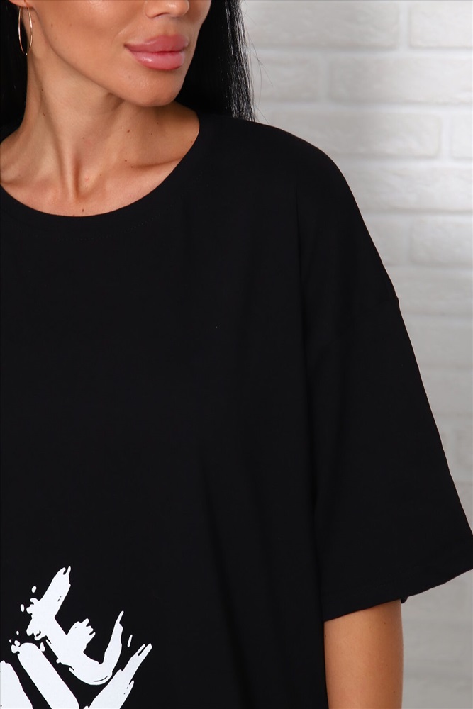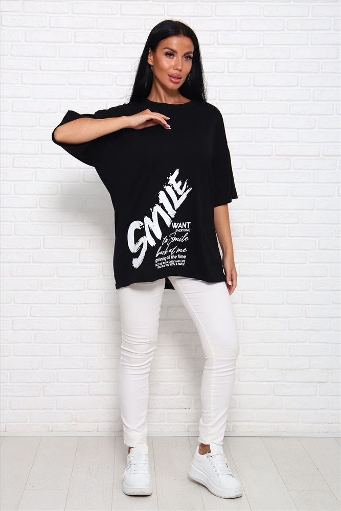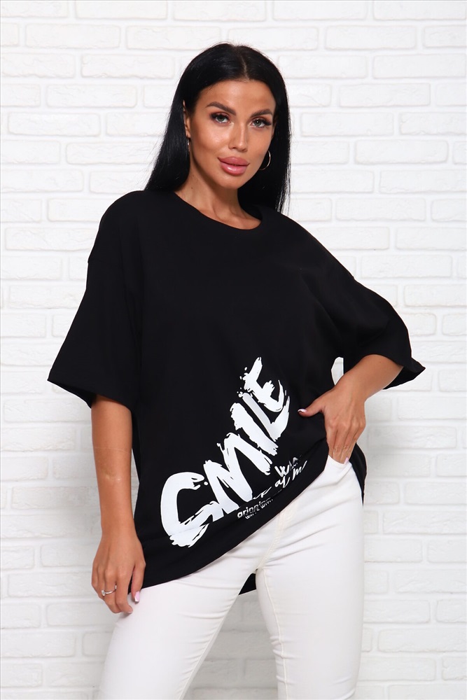 ID товара: 1027111 Состав: Хлопок 100% Сезон: Весна/Лето Фасон: Оверсайз Рукав: До локтя Вырез горловины: Круглый Рисунок: Надпись Вид ткани: Кулирка Страна бренда: Россия Страна производства: Россия Модель свободного силуэта с принтом шелкография. Горловина круглая обработана обтачкой. Рукав спущенный, выше локтя. Комментарии к товару