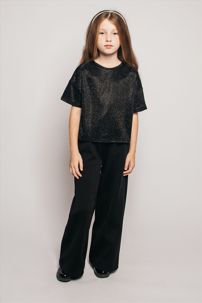 Футболка укороченная для девочки, выполненная из глиттера добавит индивидуальности любому образу и выделит среди других! Свободный крой футболки для девочек и спущенная линия плеча - трендовая модель топа футболки в гардеробе юной модницы. Укороченная футболка органично впишется в повседневные, праздничные и образы для фотосессий. Широкая размерная сетка модной одежды рассчитана для детей от пяти лет, а также подойдёт и подросткам. Универсальная форма футболки для худеньких, средних и плотных деток всегда выгодно подчеркнет достоинства и скроет недостатки. При соблюдении условий эксплуатации и ухода (бережная стирка при t не более 30C), срок службы изделия не ограничен, гипоаллергенный материал подойдет людям с чувствительной кожей. Российский бренд детской одежды сочетает в своих коллекциях городской образ с творческим подходом. В нашем магазине представлен широкий выбор одежды для девочек и мальчиков на любой сезон! Добавьте Lets Go в любимые бренды, чтоб первыми узнавать о поступлении новинок и скидок! Приятных Вам покупок!