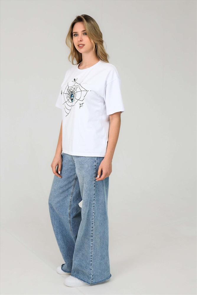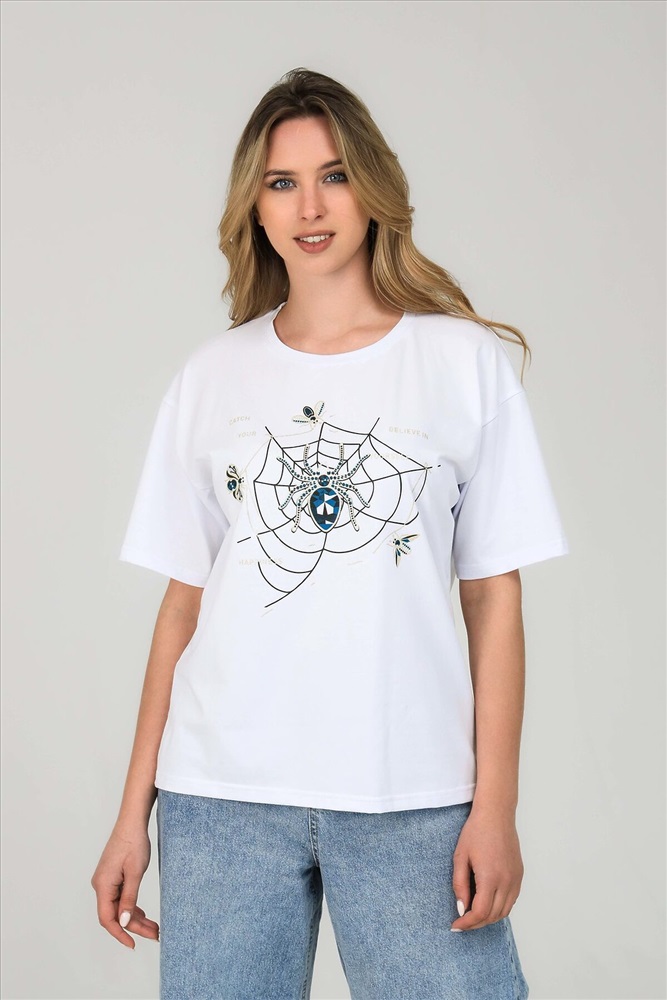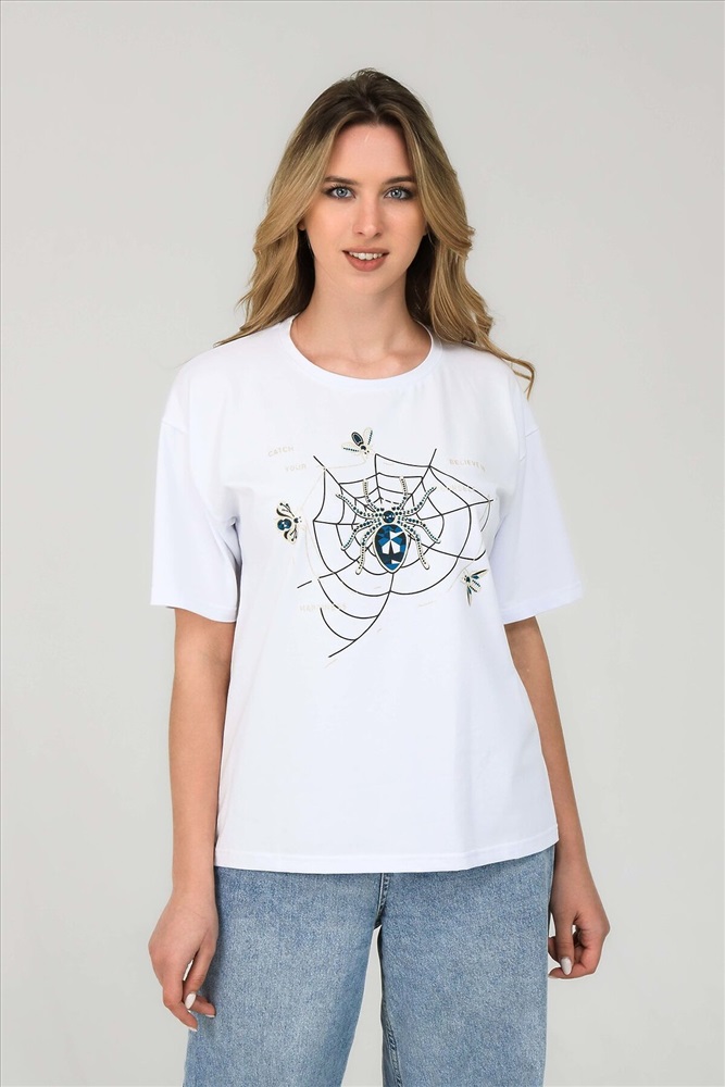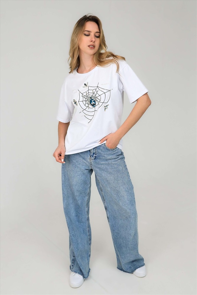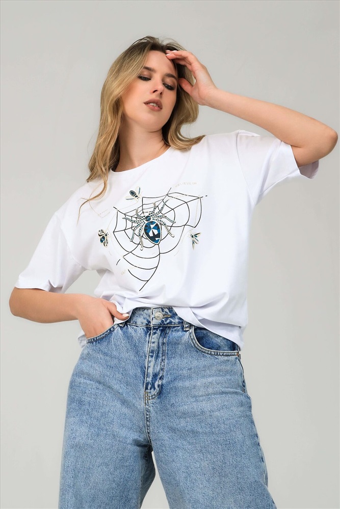 ID товара: 891562 Состав: Хлопок 92%; Лайкра 8%. Сезон: Весна/Лето Длина: Средняя Фасон: Свободный крой Рукав: короткие Вырез горловины: Округлый Рисунок: Фантазийный Декоративные элементы: Печатный принт Основная ткань: Хлопок Стиль: повседневный Вид ткани: Кулирка с лайкрой пенье Страна бренда: Россия Страна производства: Россия Женская футболка прямого свободного кроя - очень удобная, лёгкая и стильная. Эффектно смотрится и подходит на каждый день. Изделие изготовлено из высококачественного хлопка. Добавление эластана способствует длительному сохранению формы и цвета. Длина рукава указана в измерениях от точки основания шеи. Комментарии к товару