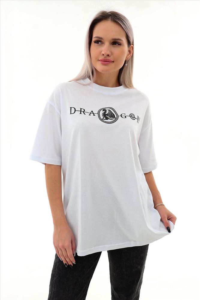 ID товара: 955167 Состав: Хлопок 100% Сезон: Весна/Лето Длина: Средняя Фасон: Свободный крой Рукав: короткие Вырез горловины: Округлый Рисунок: Надпись Основная ткань: Хлопок Стиль: Повседневный Вид ткани: Кулирка Страна бренда: Россия Страна производства: Россия Футболка-оверсайз с широкими рукавами с изображением дракона-символа 2024 года. Продуманный крой позволяет свободно двигаться и обеспечивает комфорт в движении. Длина рукава указана от основания шеи. Футболка предназначена для повседневного использования и в качестве оригинального подарка. Комментарии к товару